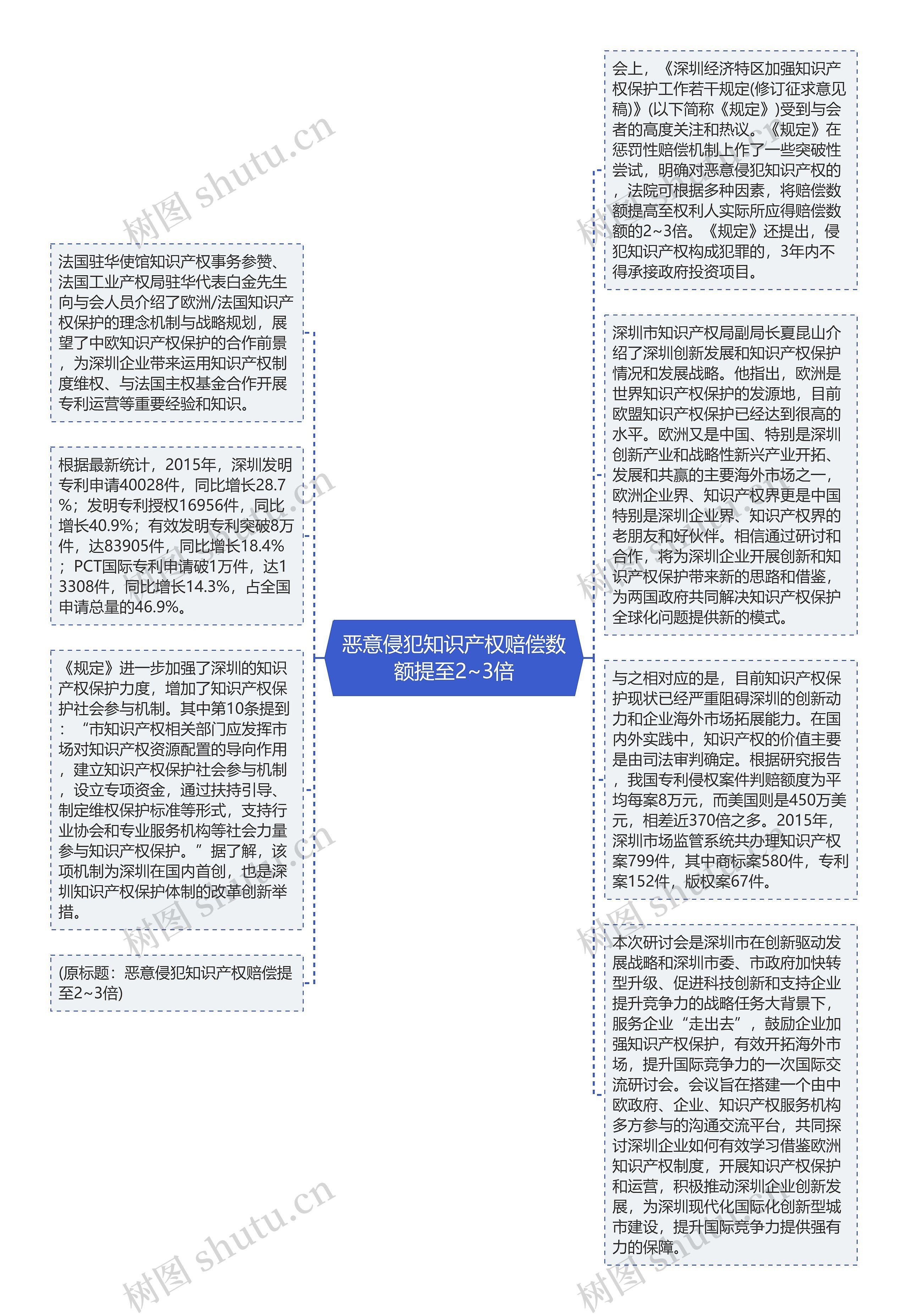 会上,《深圳经济特区加强知识产权保护工作若干规定(修订征求意见稿)》(以下简称《规定》)受到与会者的高度关注和热议。《规定》在惩罚性赔偿机制上作了一些突破性尝试,明确对恶意侵犯知识产权的,法院可根据多种因素,将赔偿数额提高至权利人实际所应得赔偿数额的2~3倍。《规定》还提出,侵犯知识产权构成犯罪的,3年内不得承接政府投资项目。