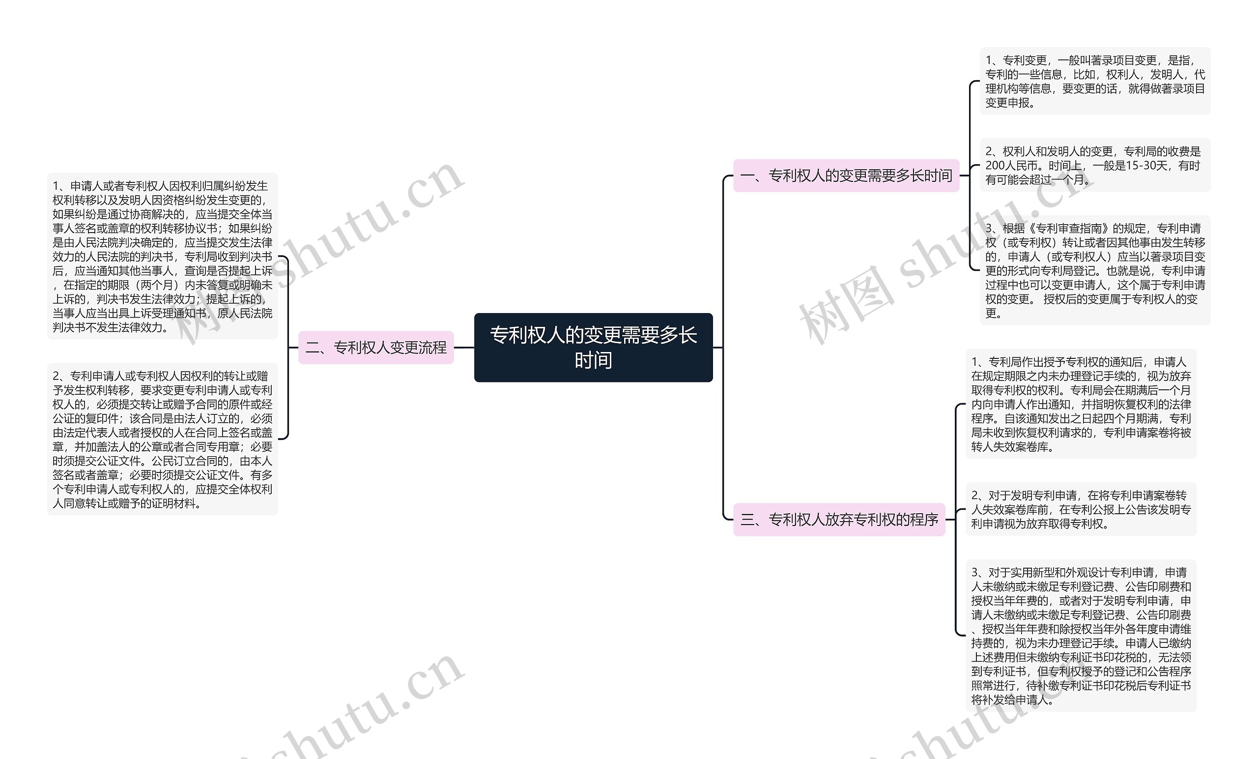 树图思维导图提供《专利权人的变更需要多长时间》在线思维导图免费制作,点击“编辑”按钮,可对《专利权人的变更需要多长时间》进行在线思维导图编辑,本思维导图属于思维导图模板主题,文件编号是:4aa86265fa993ca194a7d7d82585a4c7