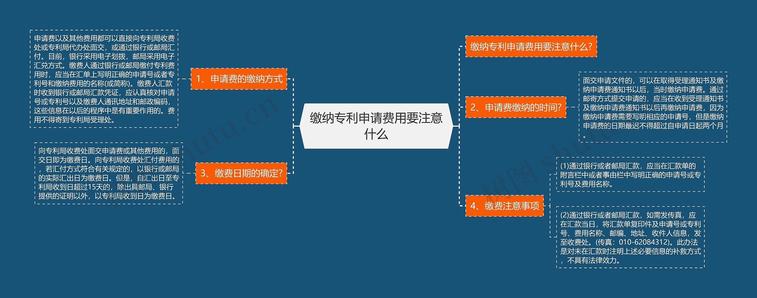 树图思维导图提供《缴纳专利申请费用要注意什么》在线思维导图免费制作,点击“编辑”按钮,可对《缴纳专利申请费用要注意什么》进行在线思维导图编辑,本思维导图属于思维导图模板主题,文件编号是:977b3f90bc09779fae910ff4ab6ebbde