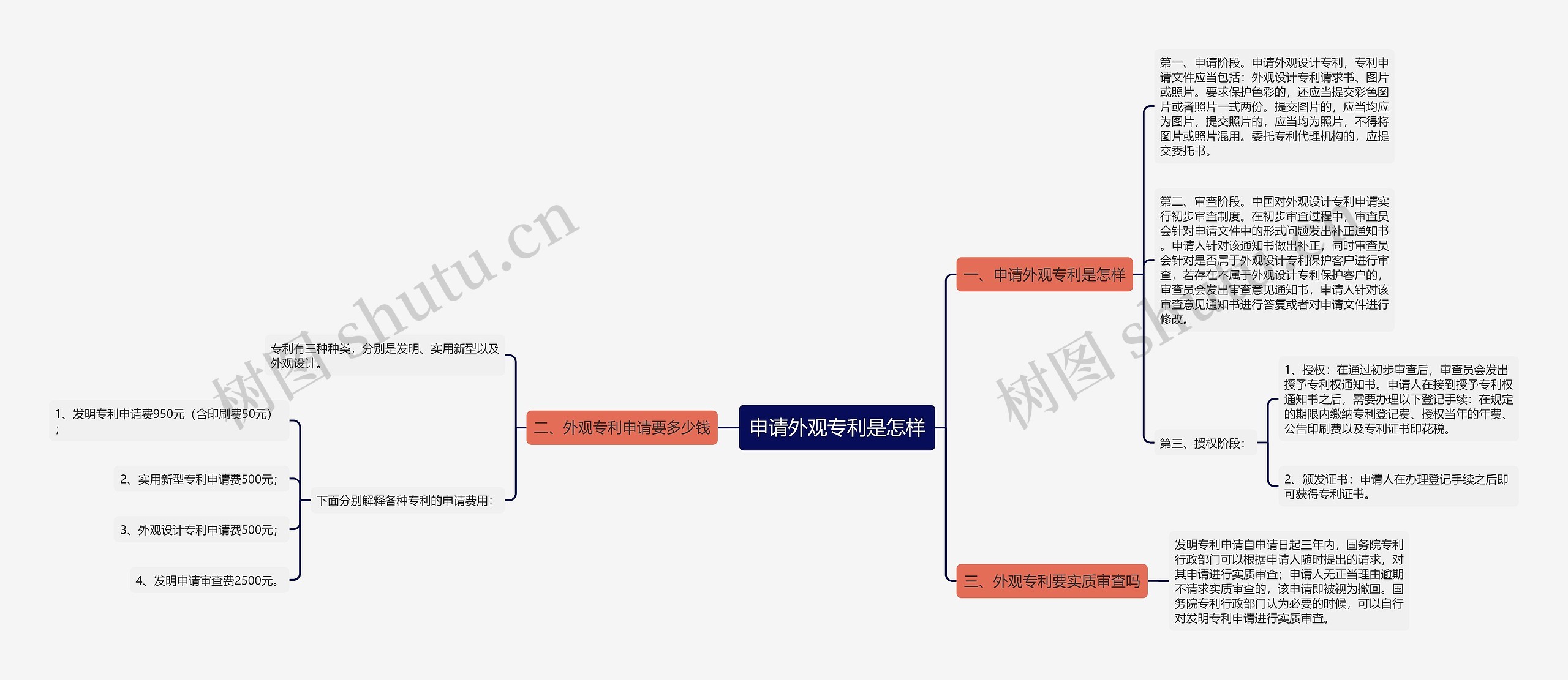 树图思维导图提供《申请外观专利是怎样》在线思维导图免费制作,点击“编辑”按钮,可对《申请外观专利是怎样》进行在线思维导图编辑,本思维导图属于思维导图模板主题,文件编号是:4a4abad6ab4f9442f81ec5218a5bcee4