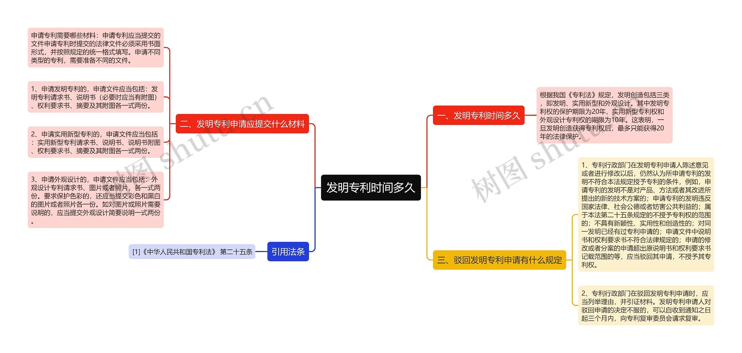 树图思维导图提供《发明专利时间多久》在线思维导图免费制作,点击“编辑”按钮,可对《发明专利时间多久》进行在线思维导图编辑,本思维导图属于思维导图模板主题,文件编号是:cc1660fcb061153ebae150e307b1d9af