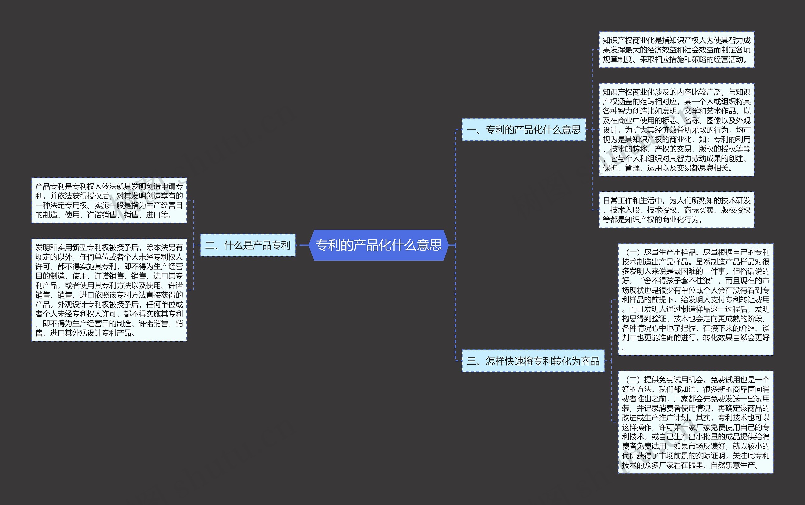 树图思维导图提供《专利的产品化什么意思》在线思维导图免费制作,点击“编辑”按钮,可对《专利的产品化什么意思》进行在线思维导图编辑,本思维导图属于思维导图模板主题,文件编号是:5db852c2d713c2304d5eb8070187bdc8