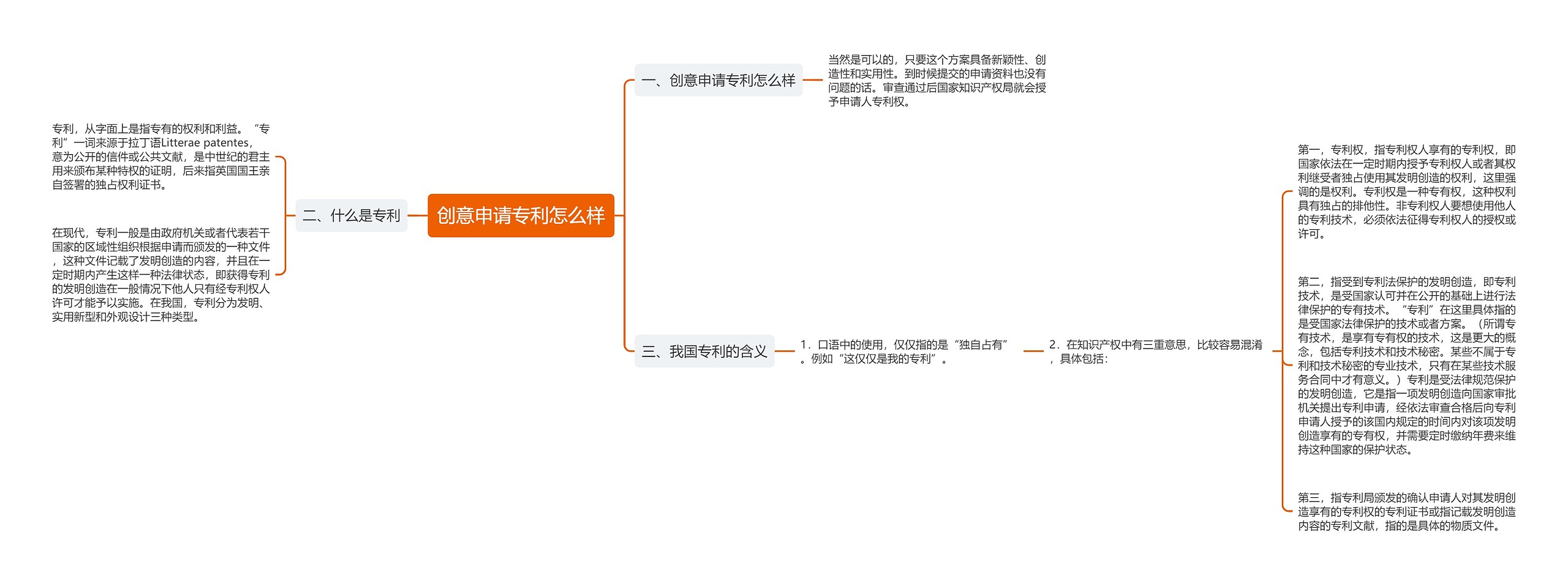 树图思维导图提供《创意申请专利怎么样》在线思维导图免费制作,点击“编辑”按钮,可对《创意申请专利怎么样》进行在线思维导图编辑,本思维导图属于思维导图模板主题,文件编号是:c6a27f867b6e05c2798cb7fa3e7e6c9e
