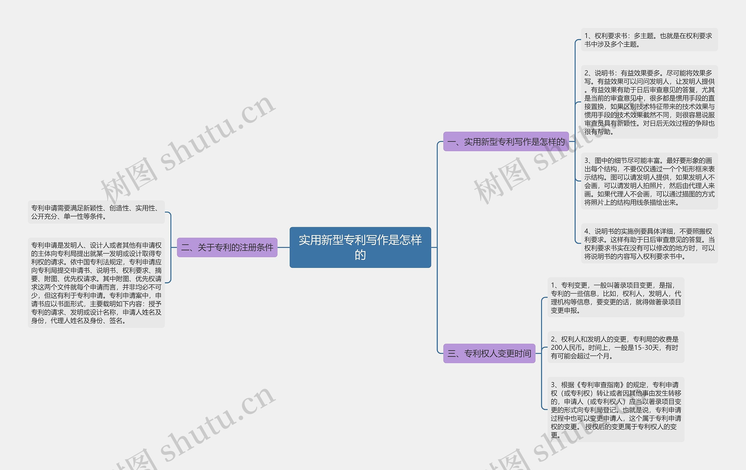 树图思维导图提供《实用新型专利写作是怎样的》在线思维导图免费制作,点击“编辑”按钮,可对《实用新型专利写作是怎样的》进行在线思维导图编辑,本思维导图属于思维导图模板主题,文件编号是:f2cf735fbe25ee892f26c7f91ee084e5