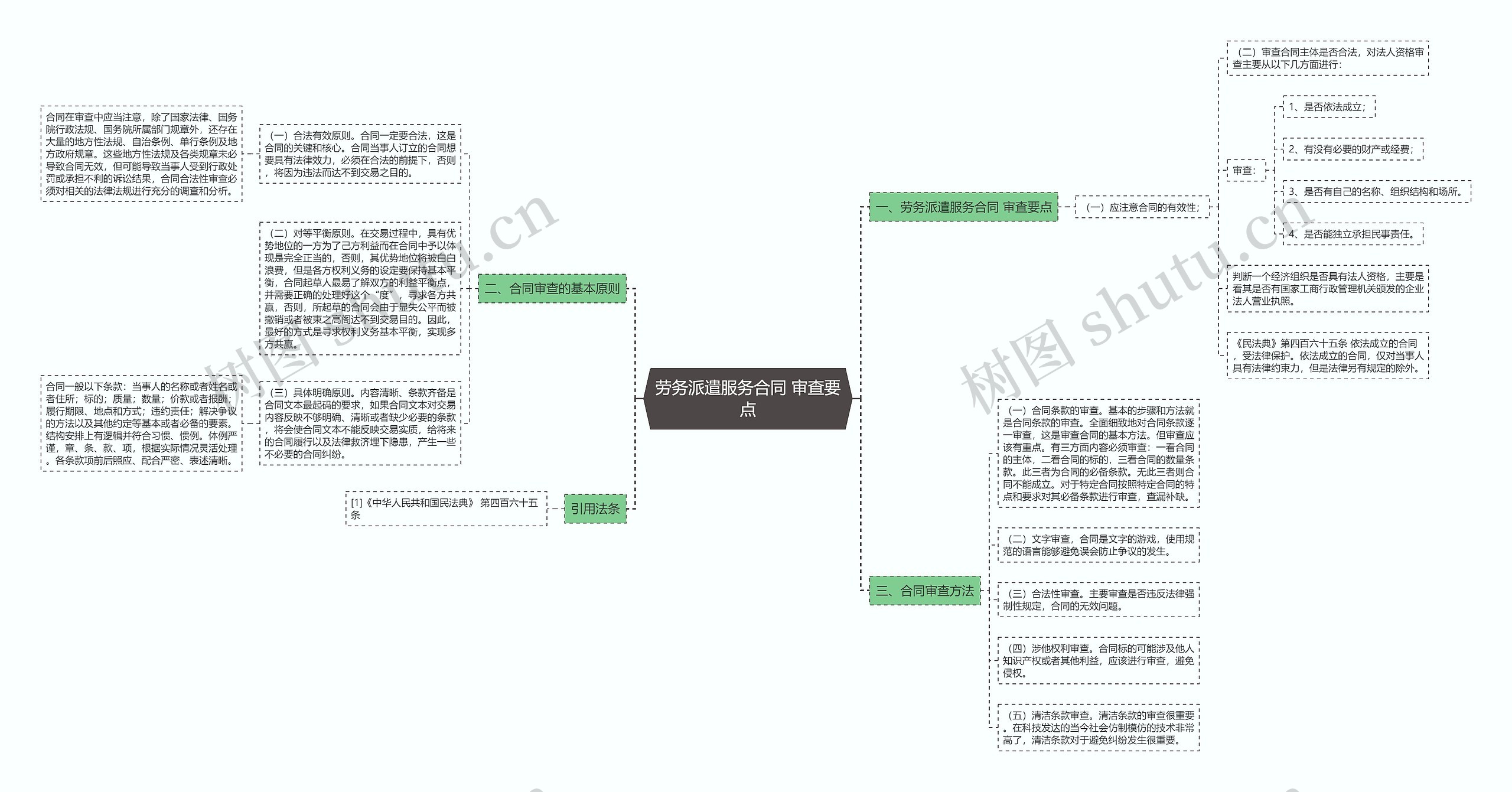 树图思维导图提供《劳务派遣服务合同 审查要点》在线思维导图免费制作,点击“编辑”按钮,可对《劳务派遣服务合同 审查要点》进行在线思维导图编辑,本思维导图属于思维导图模板主题,文件编号是:7aa55e65b896bd9be8fe4ddfa19d86fb