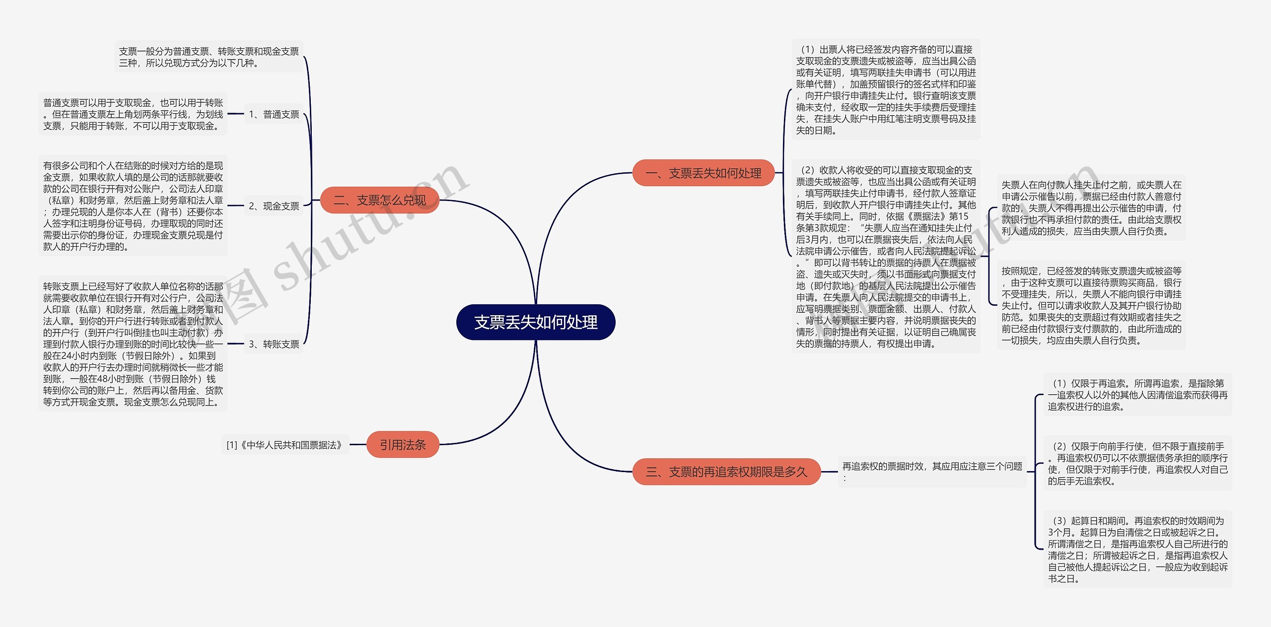 树图思维导图提供《支票丢失如何处理》在线思维导图免费制作,点击“编辑”按钮,可对《支票丢失如何处理》进行在线思维导图编辑,本思维导图属于思维导图模板主题,文件编号是:c9239d95a629f45267652ba562b44a11