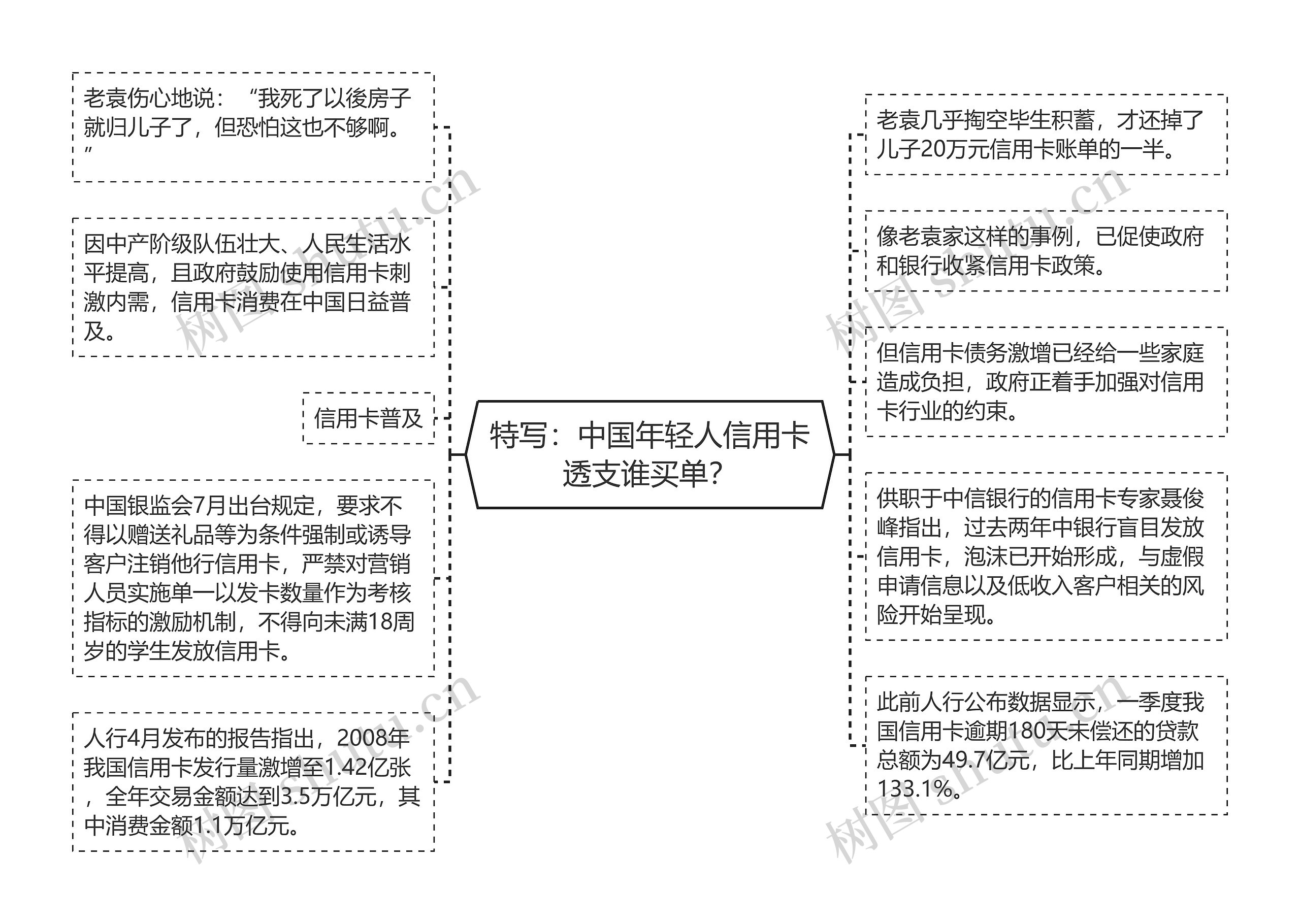 树图思维导图提供《特写:中国年轻人信用卡透支谁买单?》在线思维导图免费制作,点击“编辑”按钮,可对《特写:中国年轻人信用卡透支谁买单?》进行在线思维导图编辑,本思维导图属于思维导图模板主题,文件编号是:cdc29ed4c470aee2b1ca098dd369c1f3