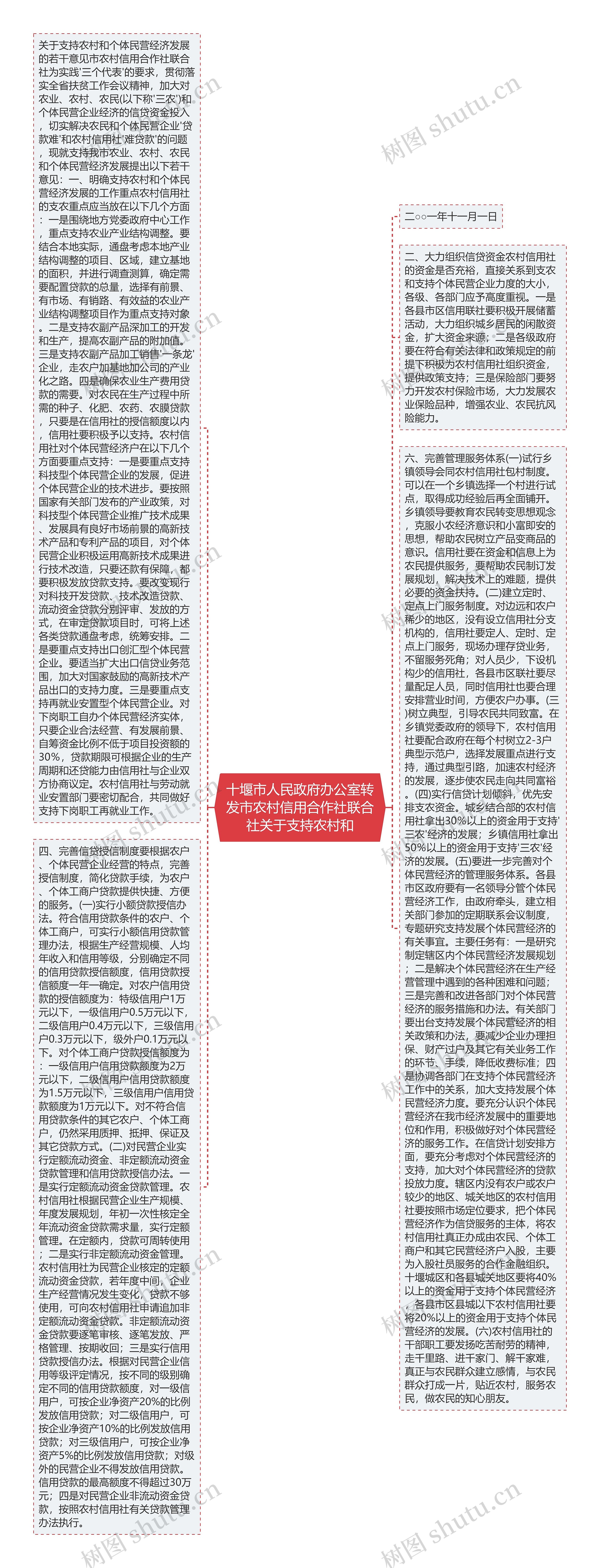 六、完善管理服务体系(一)试行乡镇领导会同农村信用社包村制度。可以在一个乡镇选择一个村进行试点,取得成功经验后再全面铺开。乡镇领导要教育农民转变思想观念,克服小农经济意识和小富即安的思想,帮助农民树立产品变商品的意识。信用社要在资金和信息上为农民提供服务,要帮助农民制订发展规划,解决技术上的难题,提供必要的资金扶持。(二)建立定时、定点上门服务制度。对边远和农户稀少的地区,没有设立信用社分支机构的,信用社要定人、定时、定点上门服务,现场办理存贷业务,不留服务死角;对人员少,下设机构少的信用社,各县市区联社要尽量配足人员,同时信用社也要合理安排营业时间,方便农户办事。(三)树立典型,引导农民共同致富。在乡镇党委政府的领导下,农村信用社要配合政府在每个村树立2-3户典型示范户,选择发展重点进行支持,通过典型引路,加速农村经济的发展,逐步使农民走向共同富裕。(四)实行信贷计划倾斜,优先安排支农资金。城乡结合部的农村信用社拿出30%以上的资金用于支持'三农'经济的发展;乡镇信用社拿出50%以上的资金用于支持'三农'经济的发展。(五)要进一步完善对个体民营经济的管理服务体系。各县市区政府要有一名领导分管个体民营经济工作,由政府牵头,建立相关部门参加的定期联系会议制度,专题研究支持发展个体民营经济的有关事宜。主要任务有:一是研究制定辖区内个体民营经济发展规划;二是解决个体民营经济在生产经营管理中遇到的各种困难和问题;三是完善和改进各部门对个体民营经济的服务措施和办法。有关部门要出台支持发展个体民营经济的相关政策和办法,要减少企业办理担保、财产过户及其它有关业务工作的环节、手续,降低收费标准;四是协调各部门在支持个体民营经济工作中的关系,加大支持发展个体民营经济力度。要充分认识个体民营经济在我市经济发展中的重要地位和作用,积极做好对个体民营经济的服务工作。在信贷计划安排方面,要充分考虑对个体民营经济的支持,加大对个体民营经济的贷款投放力度。辖区内没有农户或农户较少的地区、城关地区的农村信用社要按照市场定位要求,把个体民营经济作为信贷服务的主体,将农村信用社真正办成由农民、个体工商户和其它民营经济户入股,主要为入股社员服务的合作金融组织。十堰城区和各县城关地区要将40%以上的资金用于支持个体民营经济,各县市区县城以下农村信用社要将20%以上的资金用于支持个体民营经济的发展。(六)农村信用社的干部职工要发扬吃苦耐劳的精神,走千里路、进千家门、解千家难,真正与农民群众建立感情,与农民群众打成一片,贴近农村,服务农民,做农民的知心朋友。