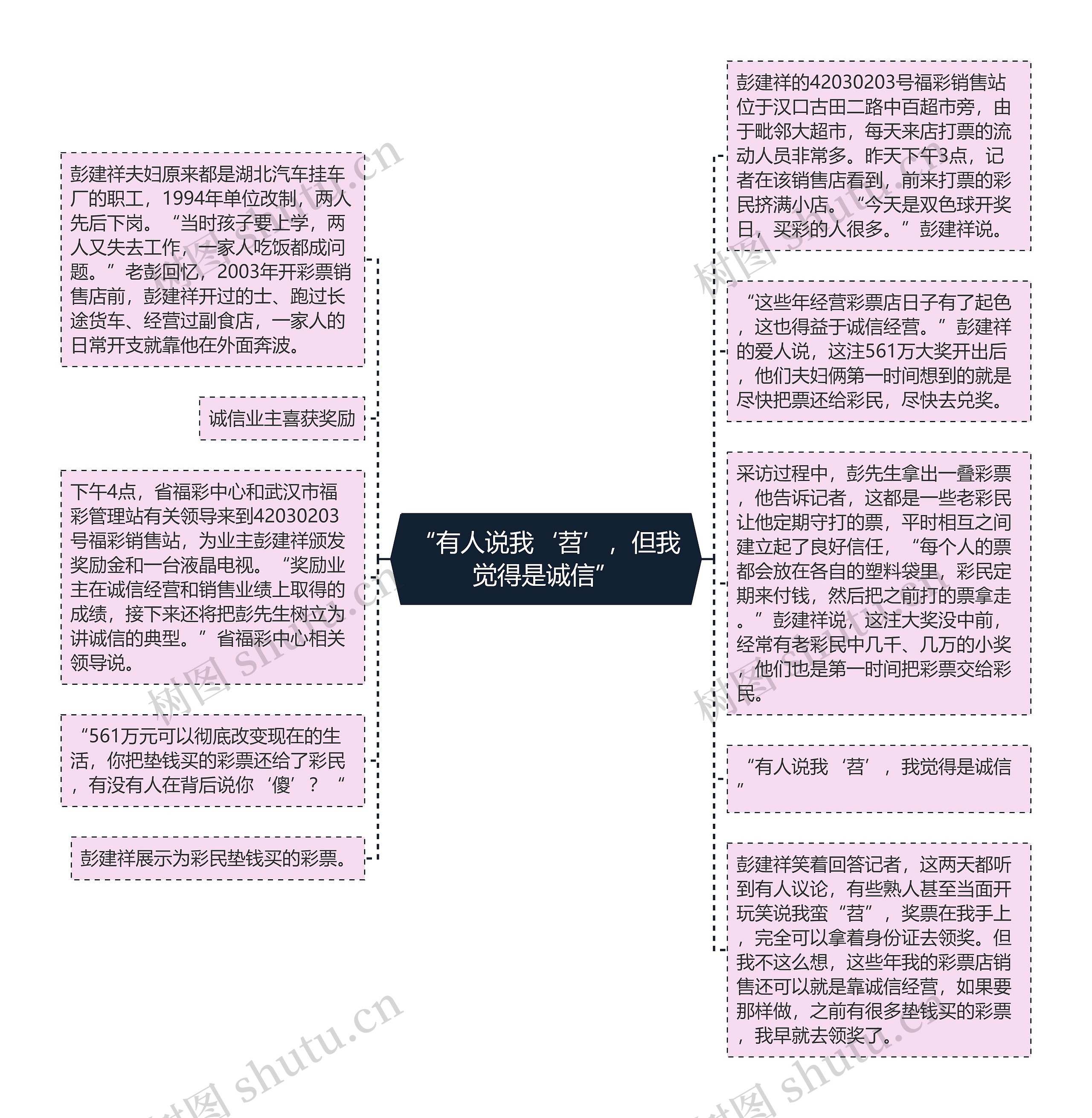 彭建祥笑着回答记者,这两天都听到有人议论,有些熟人甚至当面开玩笑说我蛮“苕”,奖票在我手上,完全可以拿着身份证去领奖。但我不这么想,这些年我的彩票店销售还可以就是靠诚信经营,如果要那样做,之前有很多垫钱买的彩票,我早就去领奖了。