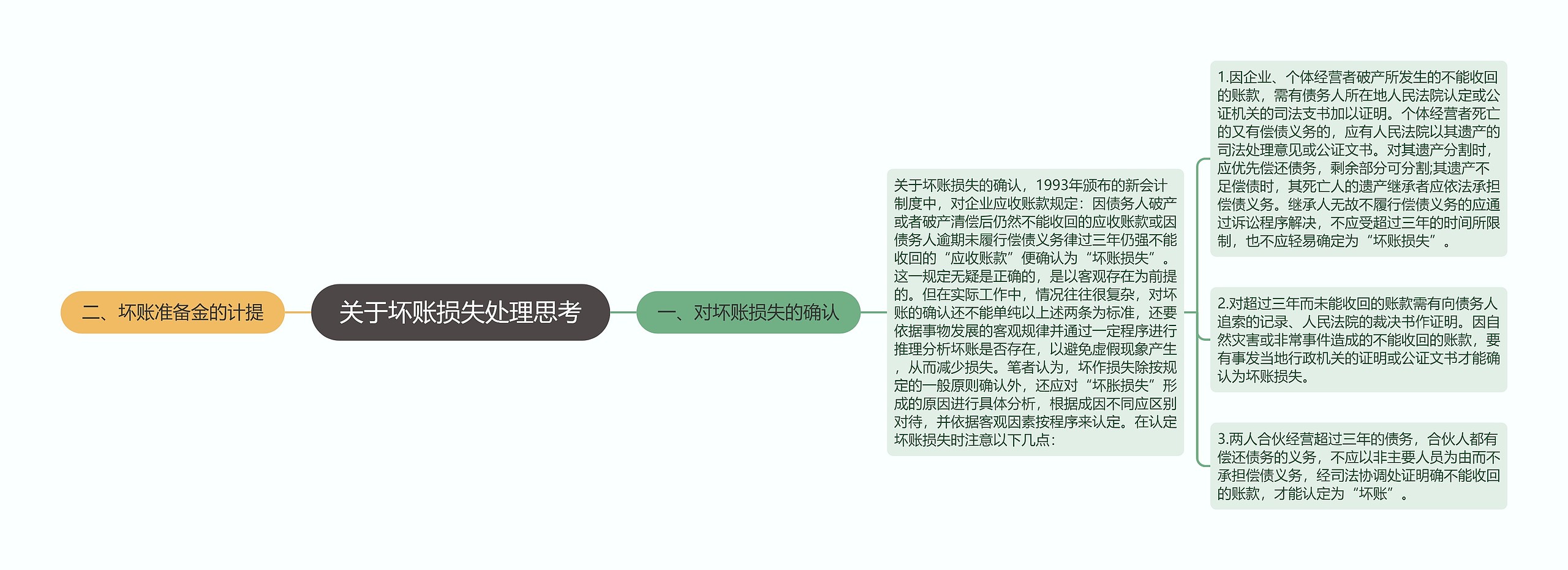 树图思维导图提供《关于坏账损失处理思考》在线思维导图免费制作,点击“编辑”按钮,可对《关于坏账损失处理思考》进行在线思维导图编辑,本思维导图属于思维导图模板主题,文件编号是:0f9f689c886466d6170afa7e18772684