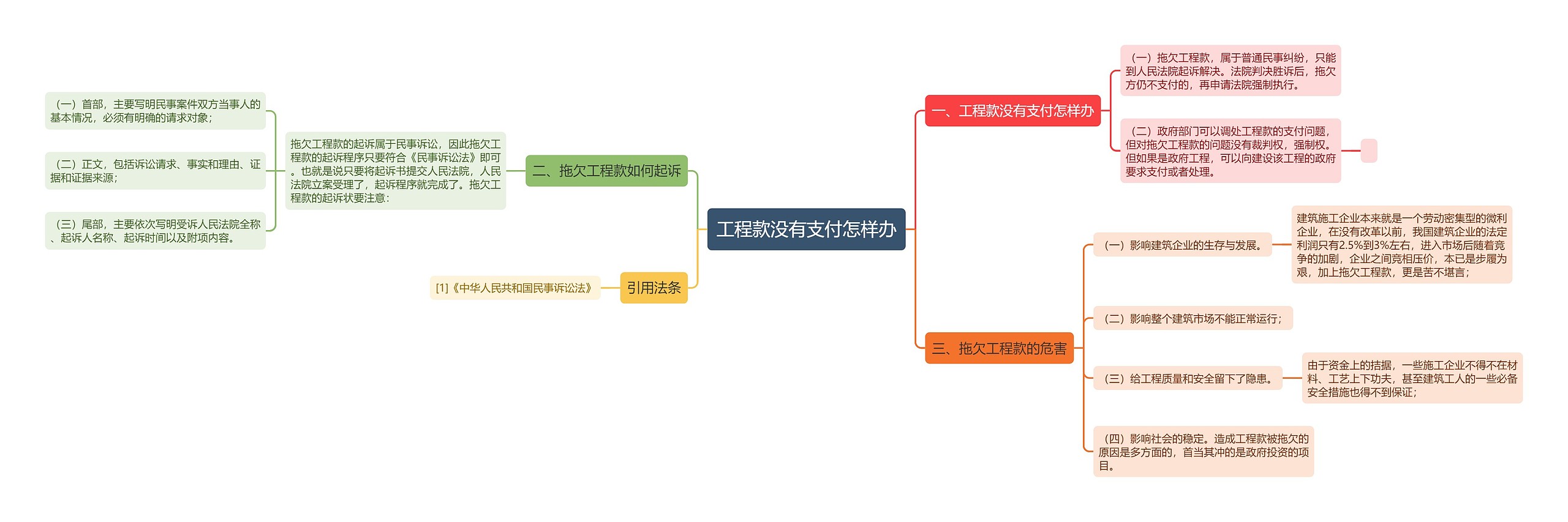 树图思维导图提供《工程款没有支付怎样办》在线思维导图免费制作,点击“编辑”按钮,可对《工程款没有支付怎样办》进行在线思维导图编辑,本思维导图属于思维导图模板主题,文件编号是:45ab2f1d26e4856208f93dd8e9e6ef0d