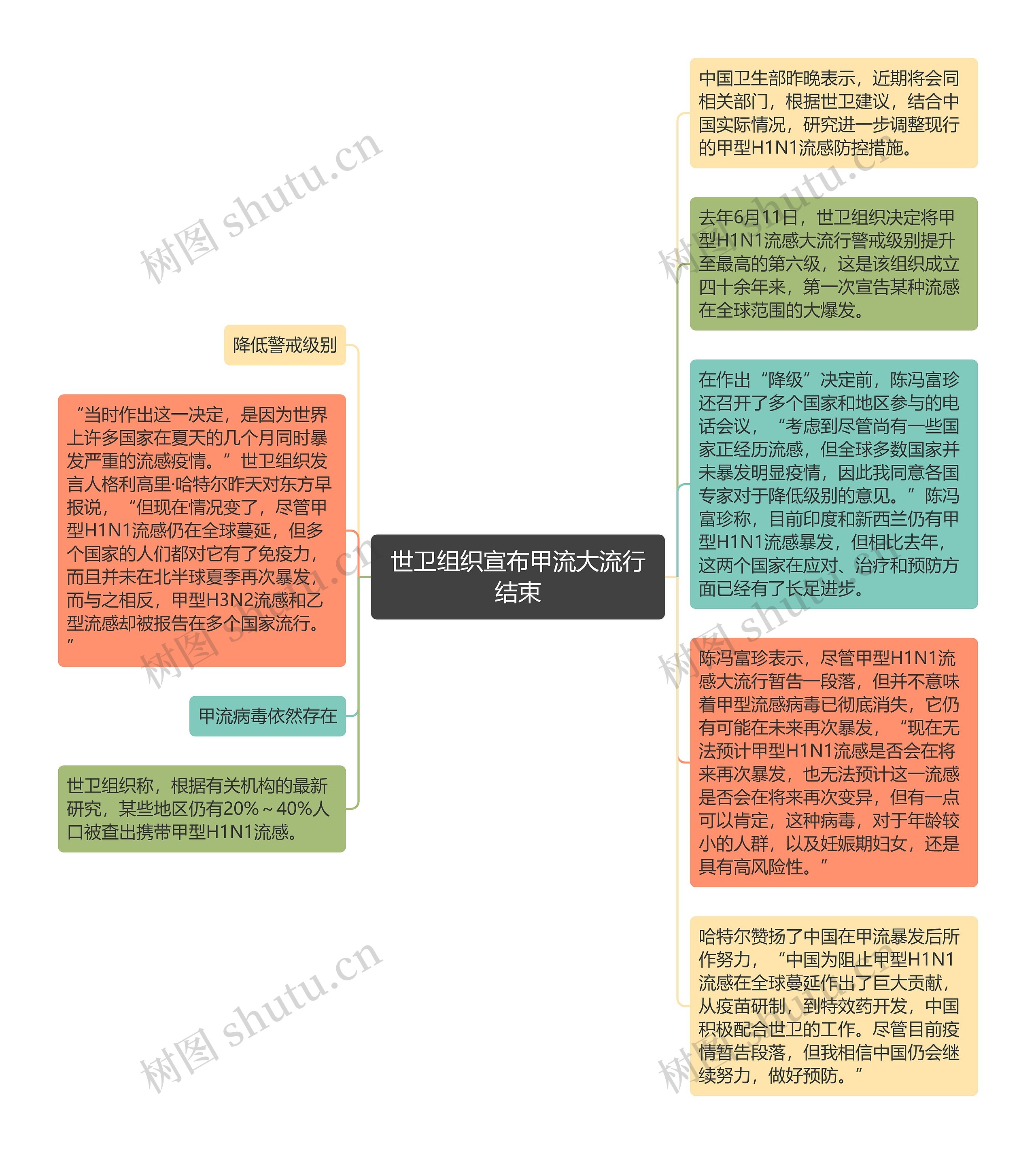 在作出“降级”决定前,陈冯富珍还召开了多个国家和地区参与的电话会议,“考虑到尽管尚有一些国家正经历流感,但全球多数国家并未暴发明显疫情,因此我同意各国专家对于降低级别的意见。”陈冯富珍称,目前印度和新西兰仍有甲型H1N1流感暴发,但相比去年,这两个国家在应对、治疗和预防方面已经有了长足进步。