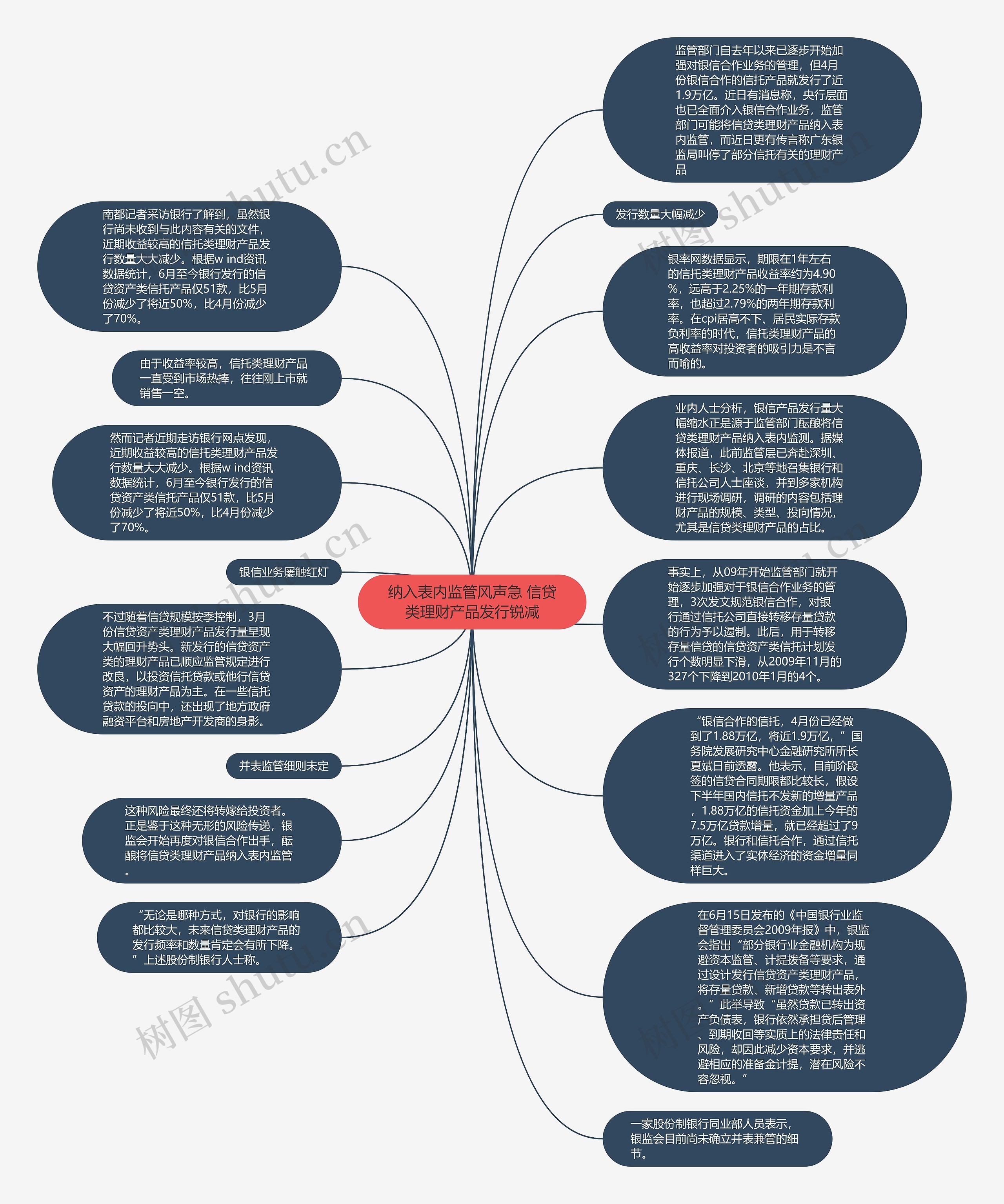 业内人士分析,银信产品发行量大幅缩水正是源于监管部门酝酿将信贷类理财产品纳入表内监测。据媒体报道,此前监管层已奔赴深圳、重庆、长沙、北京等地召集银行和信托公司人士座谈,并到多家机构进行现场调研,调研的内容包括理财产品的规模、类型、投向情况,尤其是信贷类理财产品的占比。