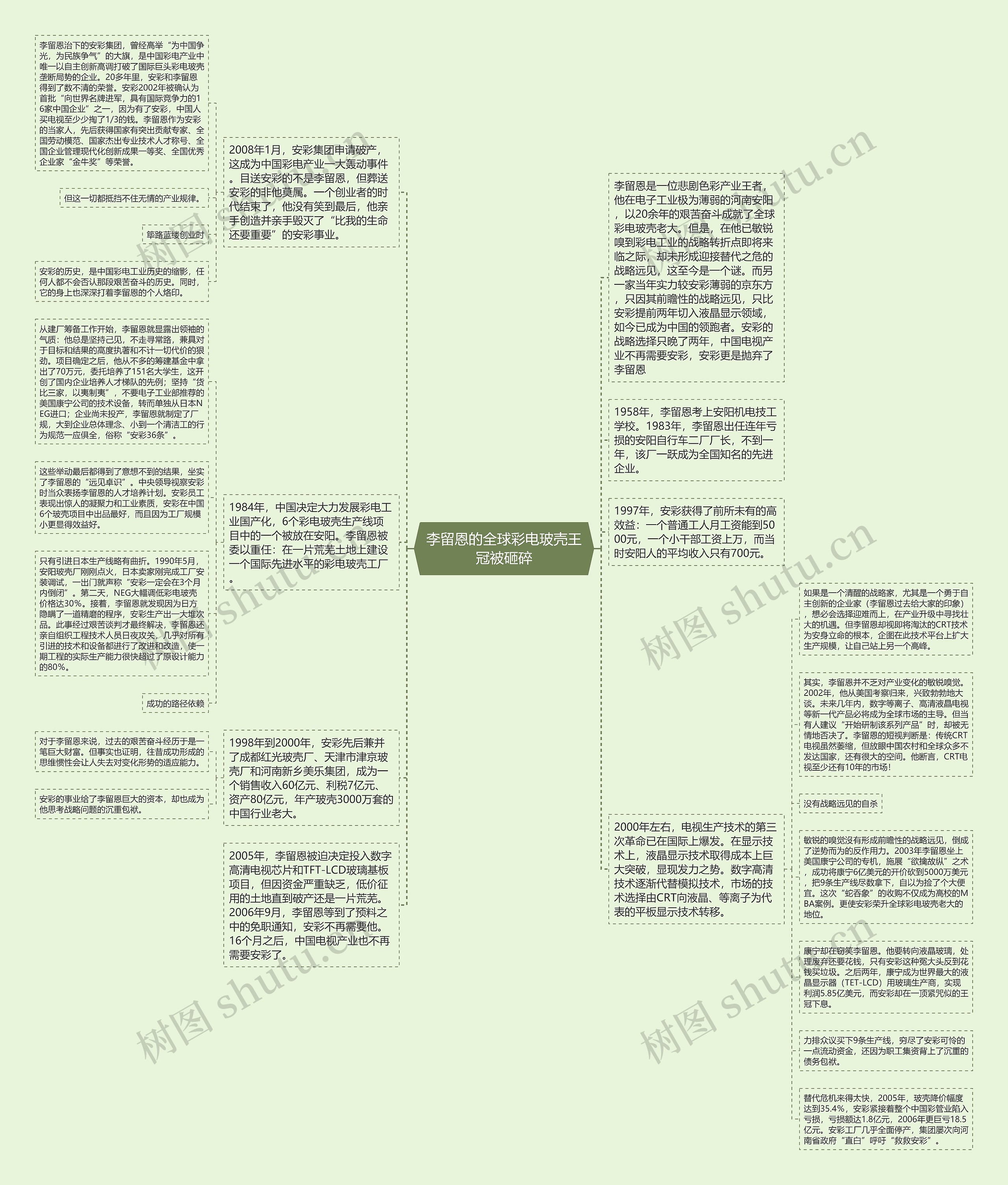 安彩的历史,是中国彩电工业历史的缩影,任何人都不会否认那段艰苦奋斗的历史。同时,它的身上也深深打着李留恩的个人烙印。