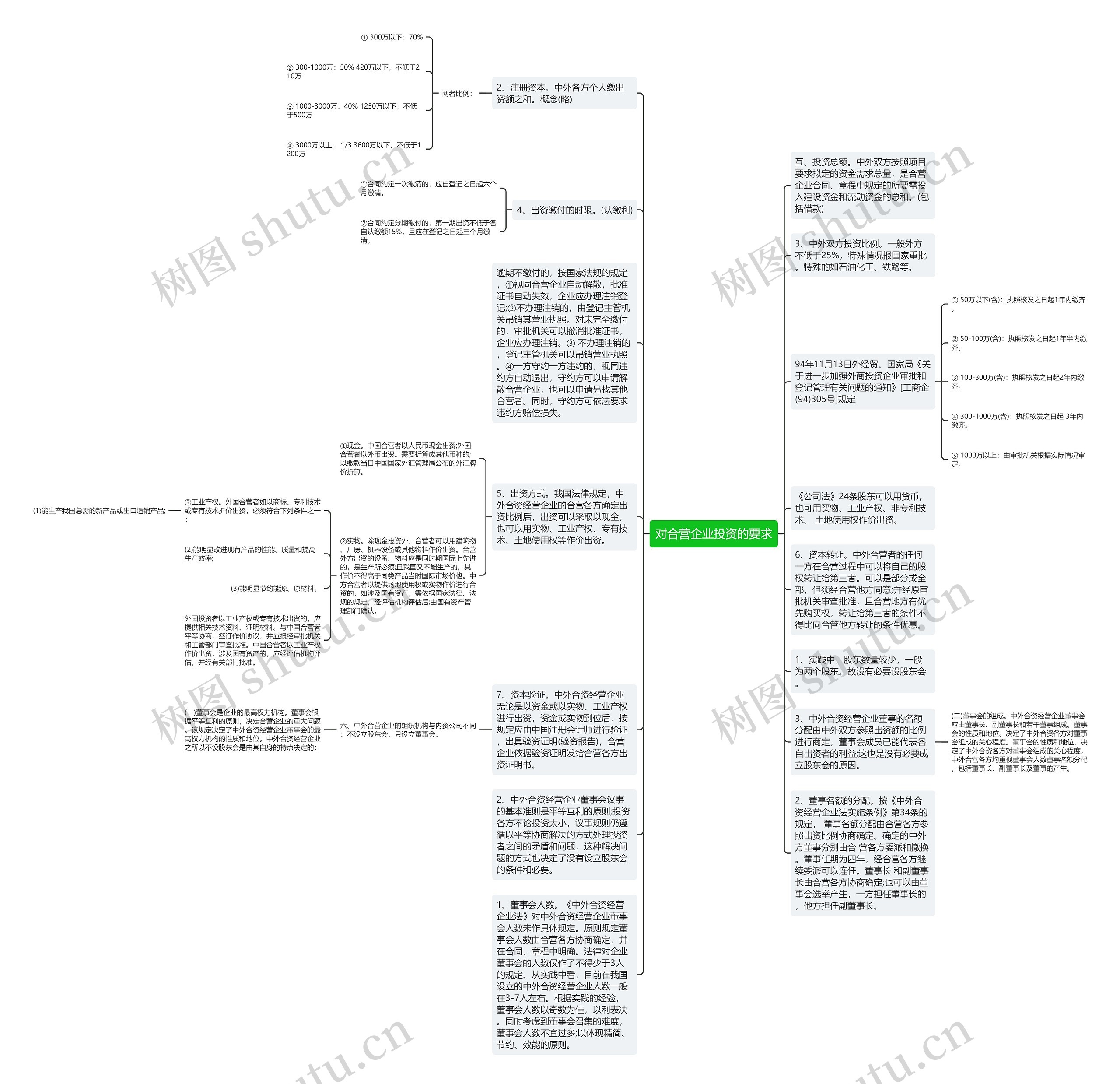 3、中外双方投资比例。一般外方不低于25%,特殊情况报国家重批。特殊的如石油化工、铁路等。