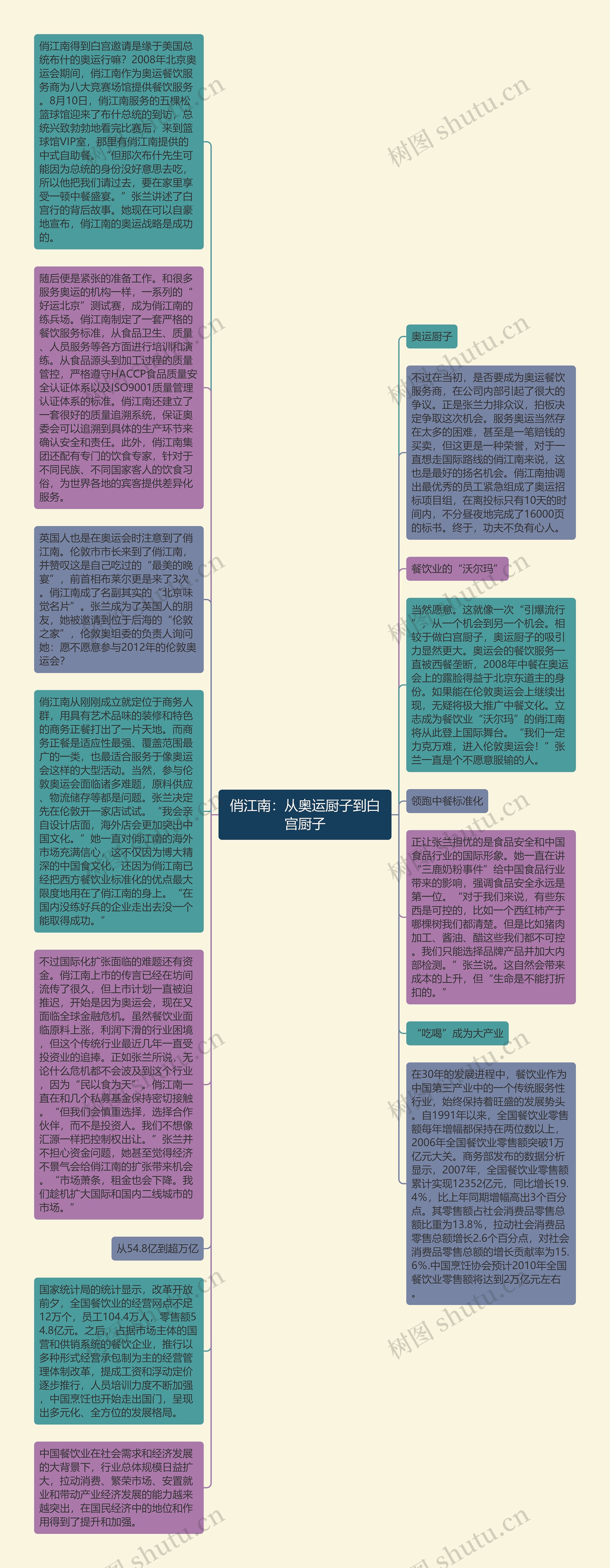 俏江南得到白宫邀请是缘于美国总统布什的奥运行嘛?2008年北京奥运会期间,俏江南作为奥运餐饮服务商为八大竞赛场馆提供餐饮服务。8月10日,俏江南服务的五棵松篮球馆迎来了布什总统的到访,总统兴致勃勃地看完比赛后,来到篮球馆VIP室,那里有俏江南提供的中式自助餐。“但那次布什先生可能因为总统的身份没好意思去吃,所以他把我们请过去,要在家里享受一顿中餐盛宴。”张兰讲述了白宫行的背后故事。她现在可以自豪地宣布,俏江南的奥运战略是成功的。