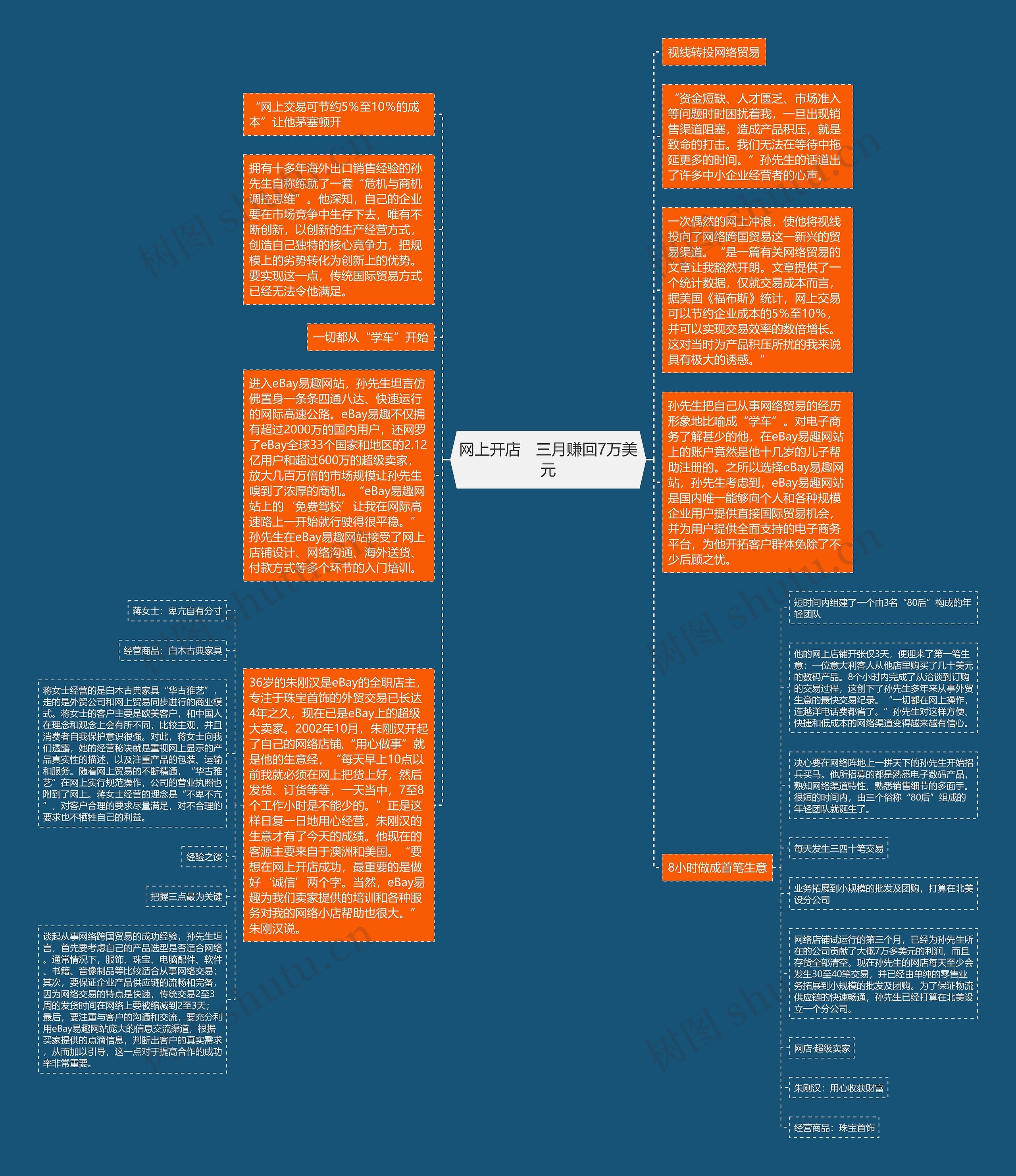 网络店铺试运行的第三个月,已经为孙先生所在的公司贡献了大概7万多美元的利润,而且存货全部清空。现在孙先生的网店每天至少会发生30至40笔交易,并已经由单纯的零售业务拓展到小规模的批发及团购。为了保证物流供应链的快速畅通,孙先生已经打算在北美设立一个分公司。