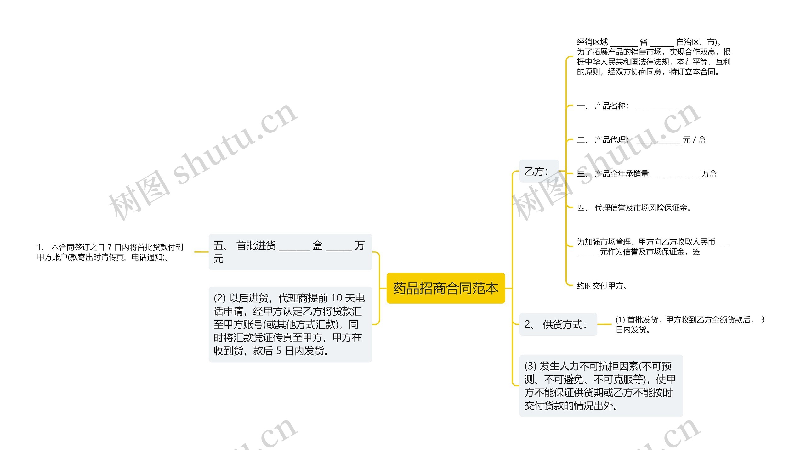 树图思维导图提供《药品招商合同范本》在线思维导图免费制作,点击“编辑”按钮,可对《药品招商合同范本》进行在线思维导图编辑,本思维导图属于思维导图模板主题,文件编号是:7356916a7a4a569c96466ef97ce1217a