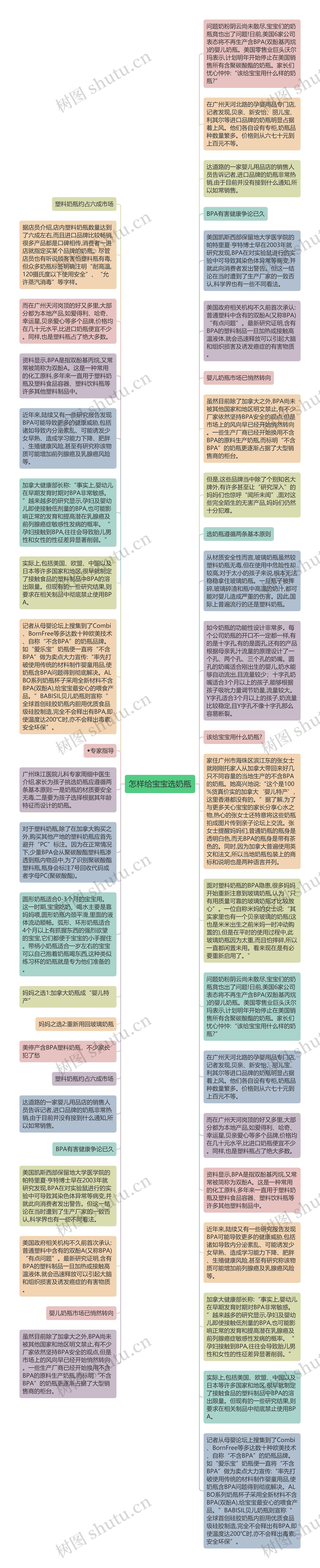 广州珠江医院儿科专家周细中医生介绍,家长为孩子挑选奶瓶应遵循两条基本原则:一是奶瓶的材质要安全无毒,二是要为孩子选择根据其年龄特征而设计的奶瓶。