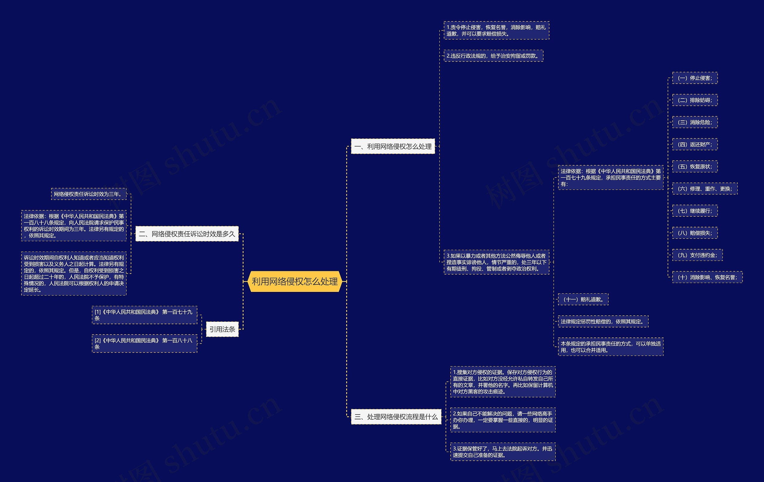 树图思维导图提供《利用网络侵权怎么处理》在线思维导图免费制作,点击“编辑”按钮,可对《利用网络侵权怎么处理》进行在线思维导图编辑,本思维导图属于思维导图模板主题,文件编号是:9274143b52da2a8dc5c2acfa52598c39