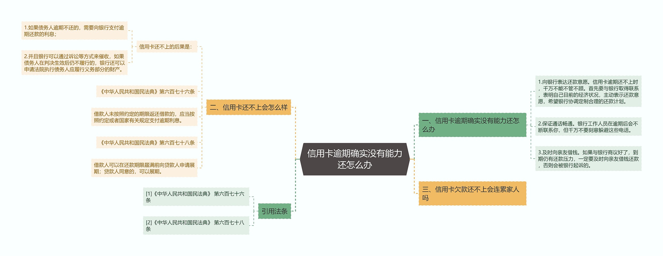 树图思维导图提供《信用卡逾期确实没有能力还怎么办》在线思维导图免费制作,点击“编辑”按钮,可对《信用卡逾期确实没有能力还怎么办》进行在线思维导图编辑,本思维导图属于思维导图模板主题,文件编号是:47acb7d1c92c2f9260f44918d1756a63
