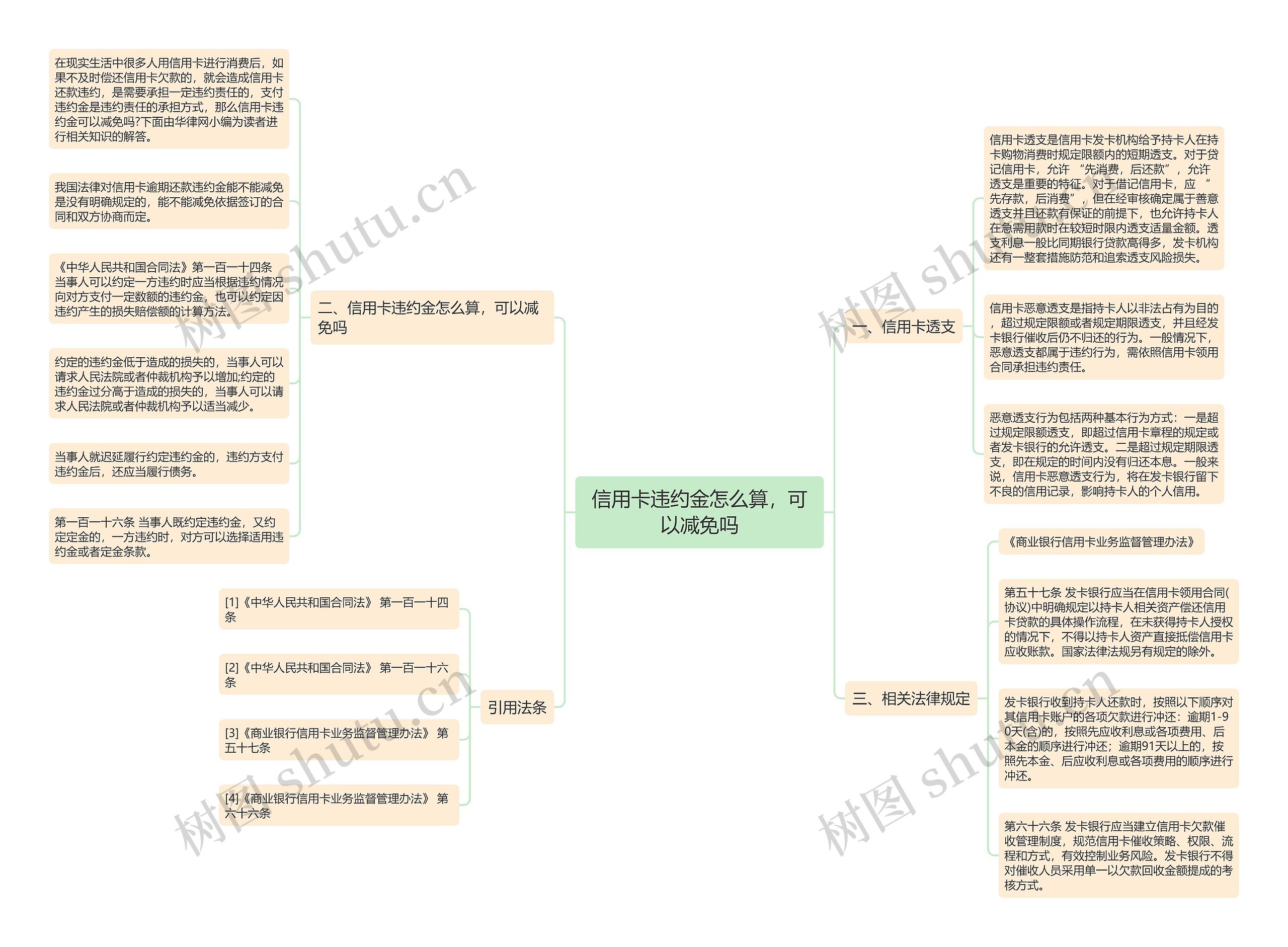 树图思维导图提供《信用卡违约金怎么算,可以减免吗》在线思维导图免费制作,点击“编辑”按钮,可对《信用卡违约金怎么算,可以减免吗》进行在线思维导图编辑,本思维导图属于思维导图模板主题,文件编号是:64bc2cee47e5f61797210680e9a82e10