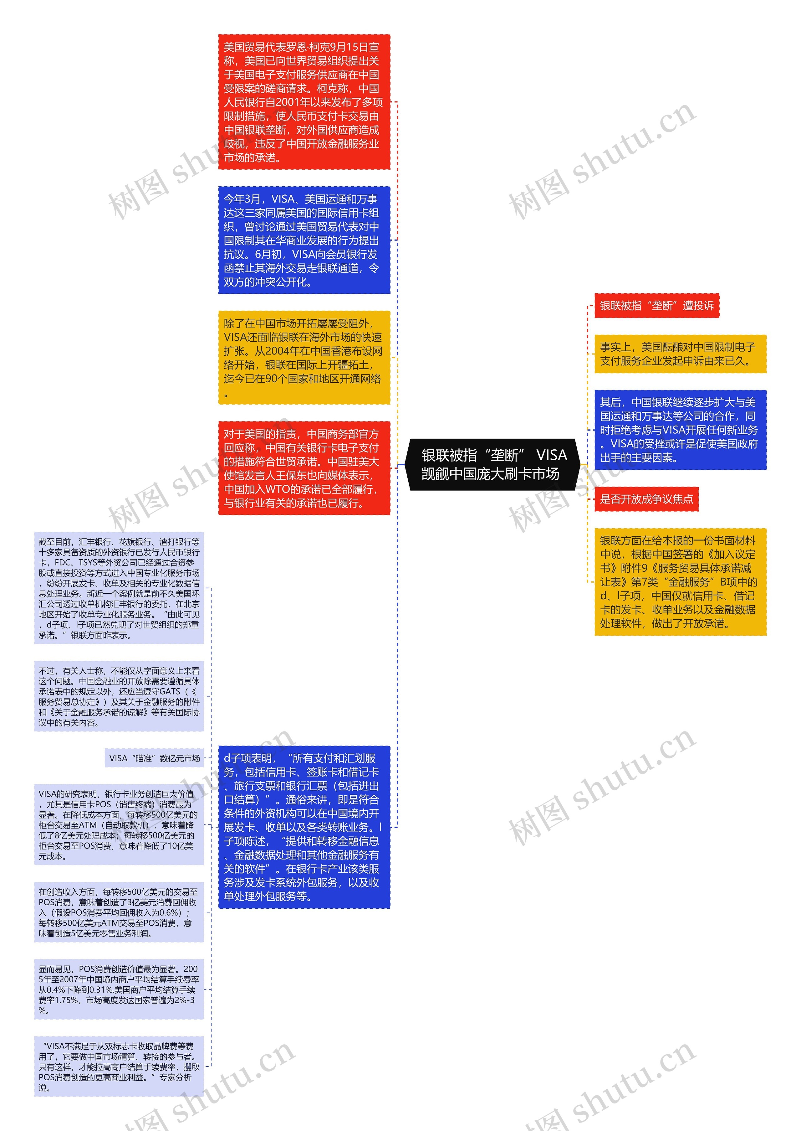 今年3月,VISA、美国运通和万事达这三家同属美国的国际信用卡组织,曾讨论通过美国贸易代表对中国限制其在华商业发展的行为提出抗议。6月初,VISA向会员银行发函禁止其海外交易走银联通道,令双方的冲突公开化。