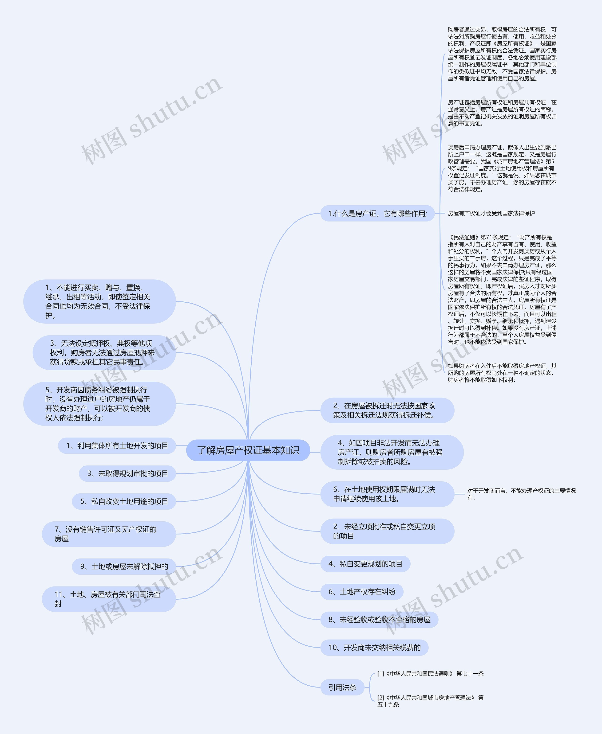 《民法通则》第71条规定:“财产所有权是指所有人对自己的财产享有占有、使用、收益和处分的权利。”个人向开发商买房或从个人手里买的二手房,这个过程,只是完成了平等的民事行为,如果不去申请办理房产证,那么这样的房屋将不受国家法律保护;只有经过国家房屋交易部门,完成法律的鉴证程序,取得房屋所有权证,即产权证后,买房人才对所买房屋有了合法的所有权,才真正成为个人的合法财产,即房屋的合法主人。房屋所有权证是国家依法保护所有权的合法凭证,房屋有了产权证后,不仅可以长期住下去,而且可以出租、转让、交换、赠予、继承和抵押,遇到建设拆迁时可以得到补偿。如果没有房产证,上述行为都属于不合法的,当个人房屋权益受到侵害时,也不能依法受到国家保护。