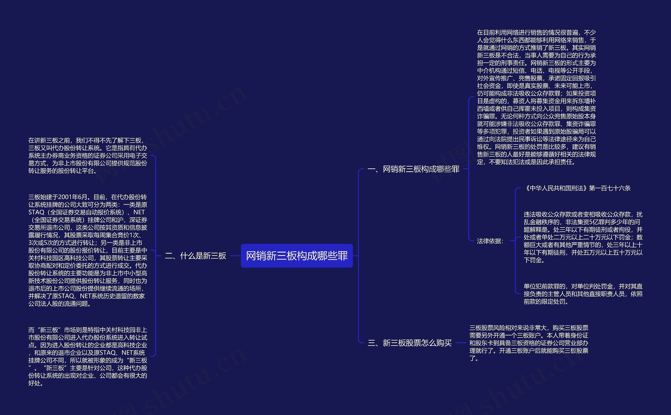 树图思维导图提供《网销新三板构成哪些罪》在线思维导图免费制作,点击“编辑”按钮,可对《网销新三板构成哪些罪》进行在线思维导图编辑,本思维导图属于思维导图模板主题,文件编号是:f5e7ea7fee973bad1194edbc9c044576