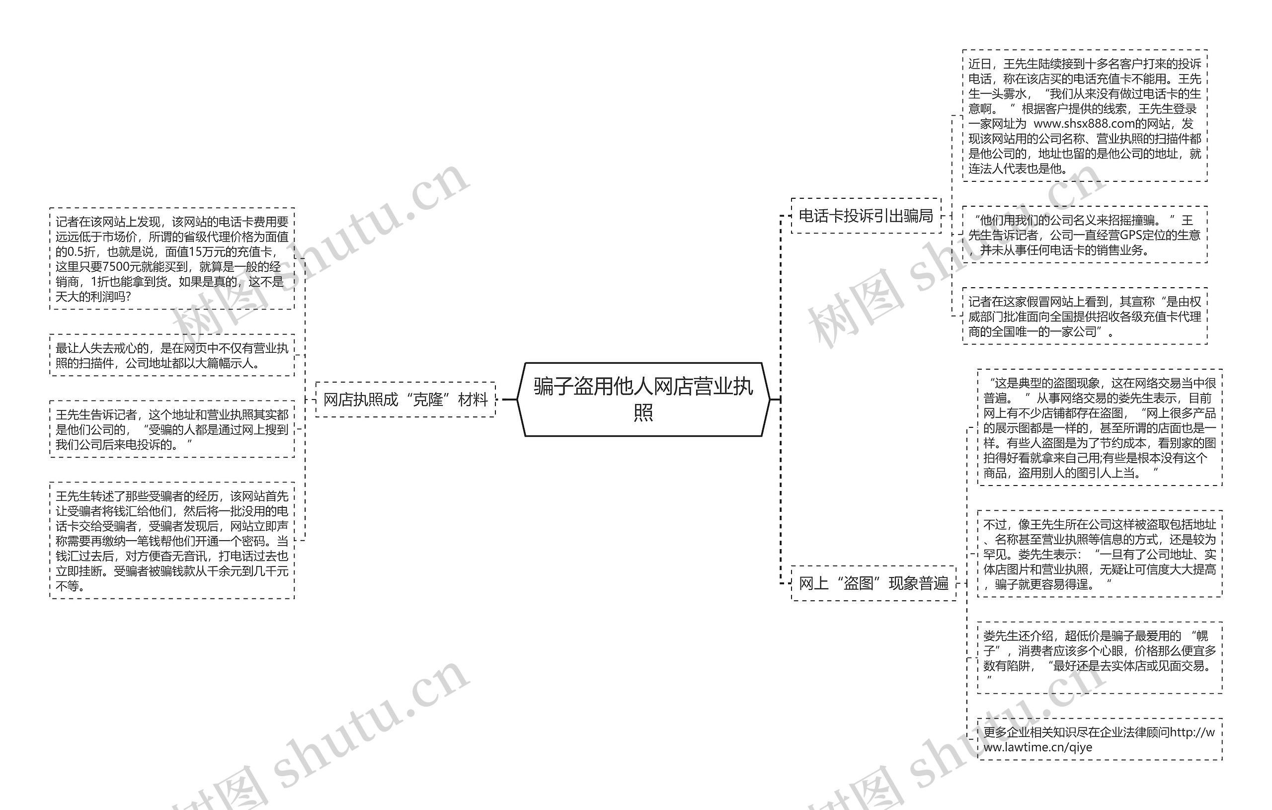 树图思维导图提供《骗子盗用他人网店营业执照》在线思维导图免费制作,点击“编辑”按钮,可对《骗子盗用他人网店营业执照》进行在线思维导图编辑,本思维导图属于思维导图模板主题,文件编号是:91ef93f62bec09cb08640906c7ca3fc5