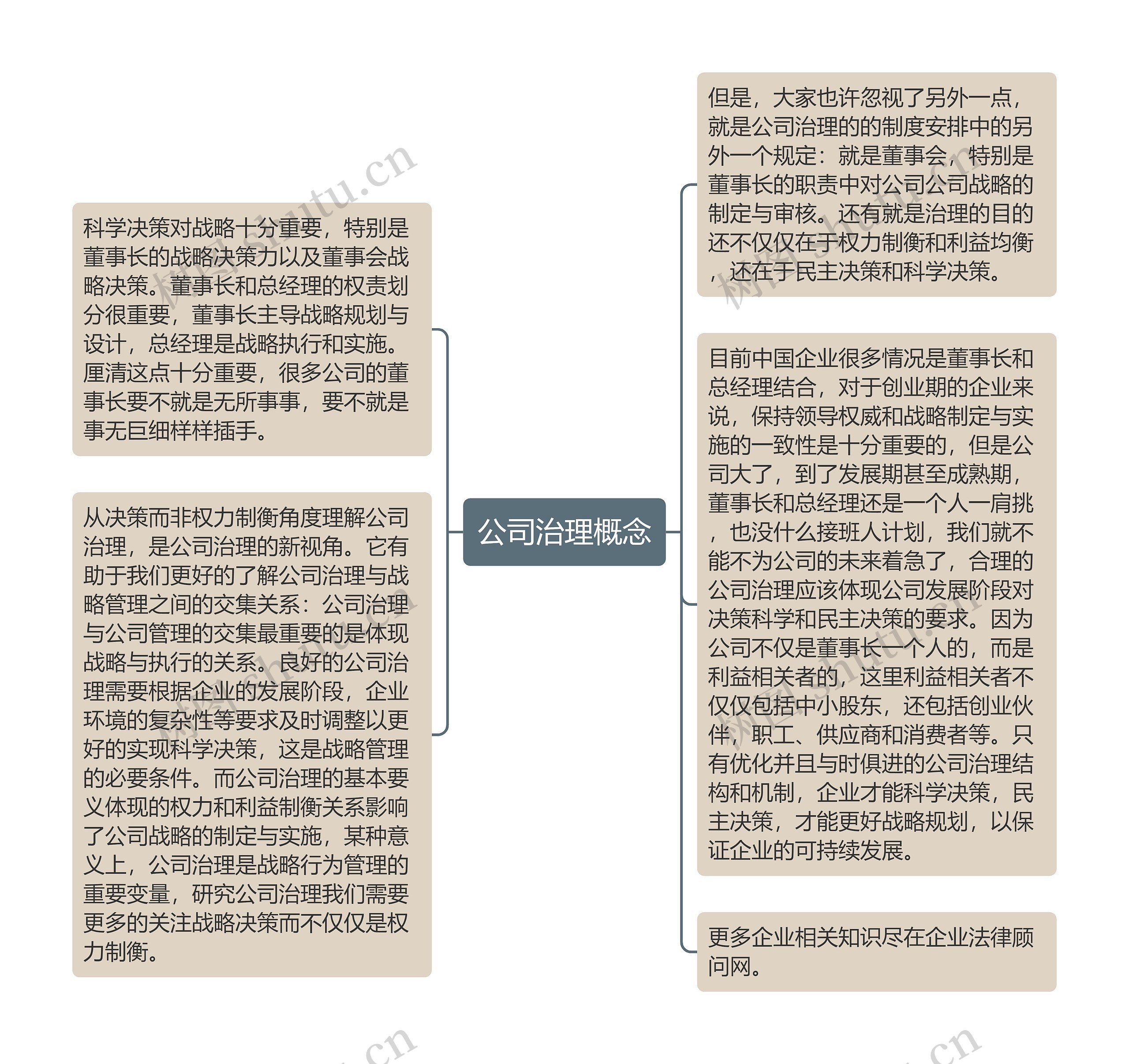 目前中国企业很多情况是董事长和总经理结合,对于创业期的企业来说,保持领导权威和战略制定与实施的一致性是十分重要的,但是公司大了,到了发展期甚至成熟期,董事长和总经理还是一个人一肩挑,也没什么接班人计划,我们就不能不为公司的未来着急了,合理的公司治理应该体现公司发展阶段对决策科学和民主决策的要求。因为公司不仅是董事长一个人的,而是利益相关者的,这里利益相关者不仅仅包括中小股东,还包括创业伙伴,职工、供应商和消费者等。只有优化并且与时俱进的公司治理结构和机制,企业才能科学决策,民主决策,才能更好战略规划,以保证企业的可持续发展。