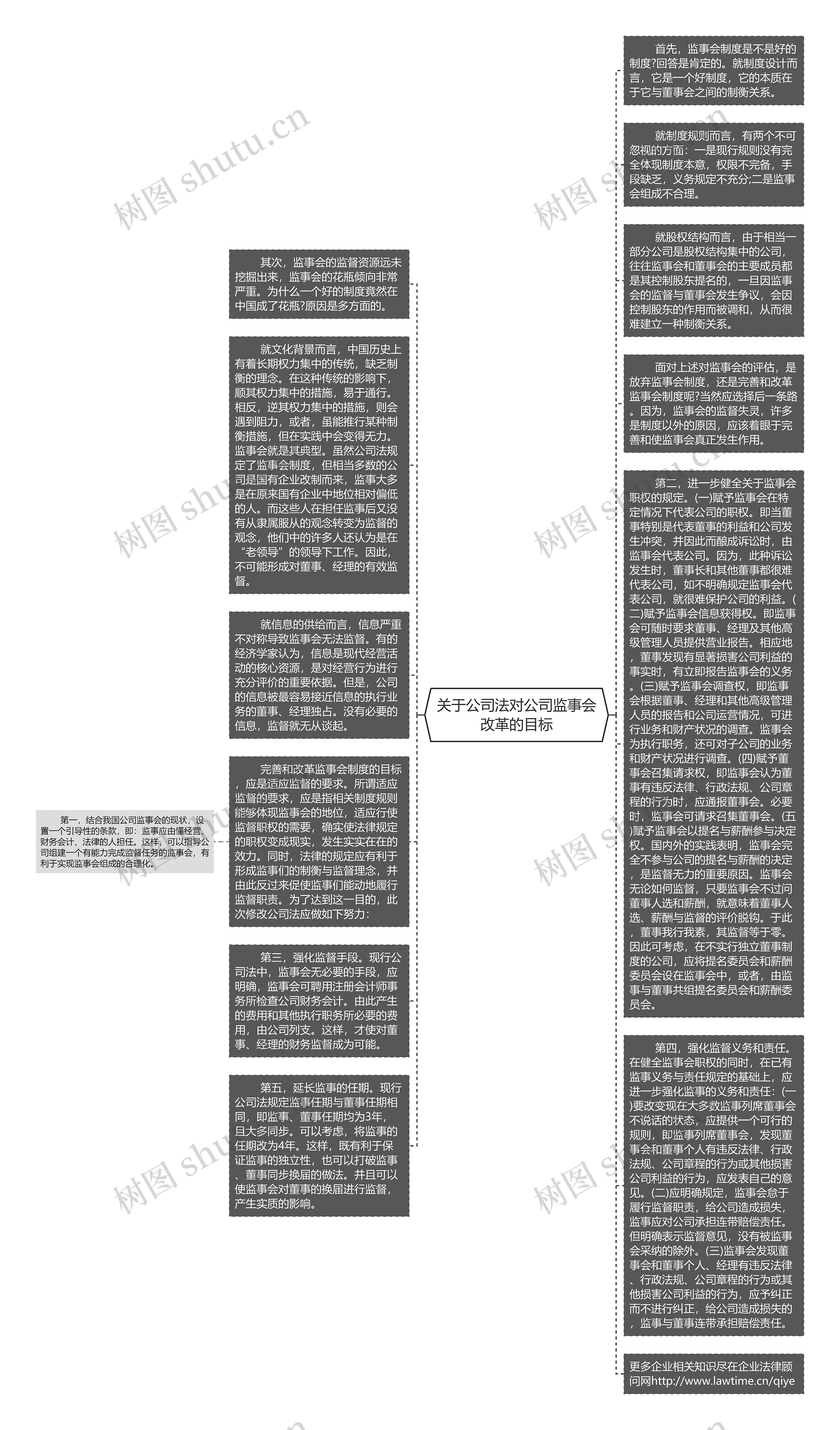 完善和改革监事会制度的目标,应是适应监督的要求。所谓适应监督的要求,应是指相关制度规则能够体现监事会的地位,适应行使监督职权的需要,确实使法律规定的职权变成现实,发生实实在在的效力。同时,法律的规定应有利于形成监事们的制衡与监督理念,并由此反过来促使监事们能动地履行监督职责。为了达到这一目的,此次修改公司法应做如下努力: