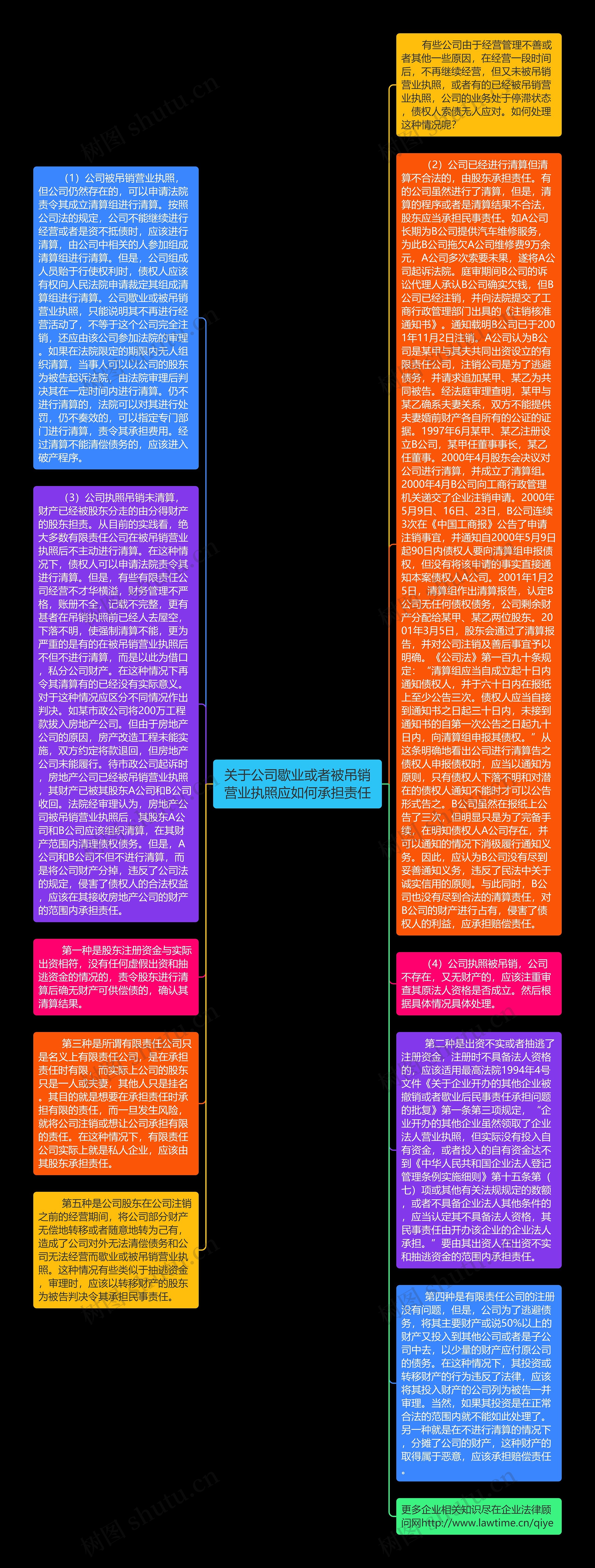 (3)公司执照吊销未清算,财产已经被股东分走的由分得财产的股东担责。从目前的实践看,绝大多数有限责任公司在被吊销营业执照后不主动进行清算。在这种情况下,债权人可以申请法院责令其进行清算。但是,有些有限责任公司经营不才华横溢,财务管理不严格,账册不全,记载不完整,更有甚者在吊销执照前已经人去屋空,下落不明,使强制清算不能,更为严重的是有的在被吊销营业执照后不但不进行清算,而是以此为借口,私分公司财产。在这种情况下再令其清算有的已经没有实际意义。对于这种情况应区分不同情况作出判决。如某市政公司将200万工程款拔入房地产公司。但由于房地产公司的原因,房产改造工程未能实施,双方约定将款退回,但房地产公司未能履行。待市政公司起诉时,房地产公司已经被吊销营业执照,其财产已被其股东A公司和B公司收回。法院经审理认为,房地产公司被吊销营业执照后,其股东A公司和B公司应该组织清算,在其财产范围内清理债权债务。但是,A公司和B公司不但不进行清算,而是将公司财产分掉,违反了公司法的规定,侵害了债权人的合法权益,应该在其接收房地产公司的财产的范围内承担责任。
