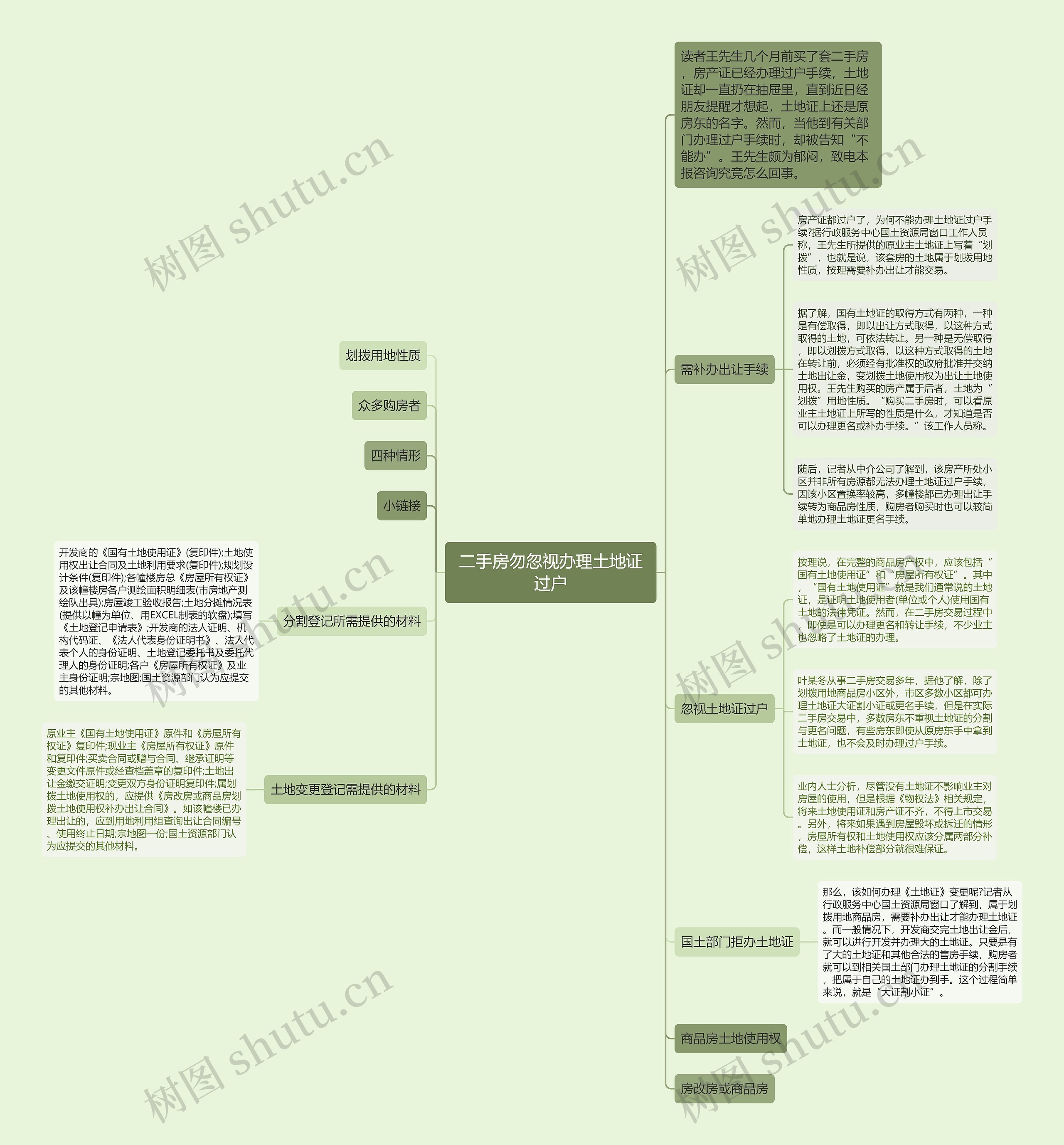 树图思维导图提供《二手房勿忽视办理土地证过户》在线思维导图免费制作,点击“编辑”按钮,可对《二手房勿忽视办理土地证过户》进行在线思维导图编辑,本思维导图属于思维导图模板主题,文件编号是:7f81d32a491476a0460ba85562470afd