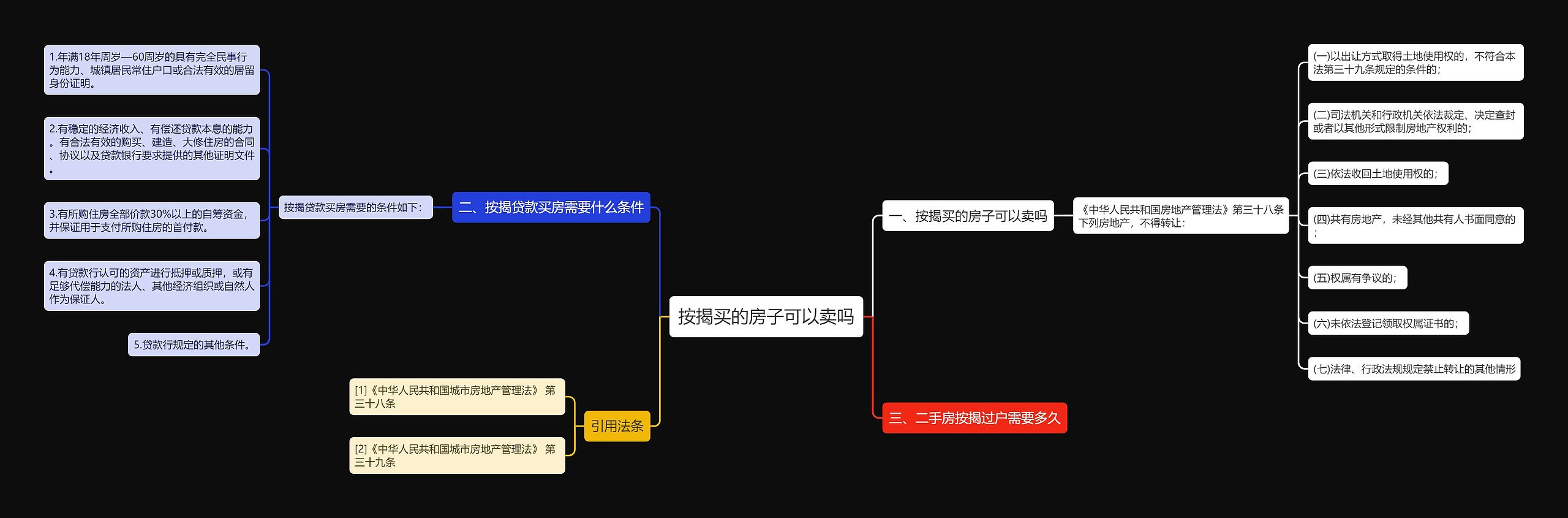 树图思维导图提供《按揭买的房子可以卖吗》在线思维导图免费制作,点击“编辑”按钮,可对《按揭买的房子可以卖吗》进行在线思维导图编辑,本思维导图属于思维导图模板主题,文件编号是:f68bc02d119c1c438f09e751b51b53e7