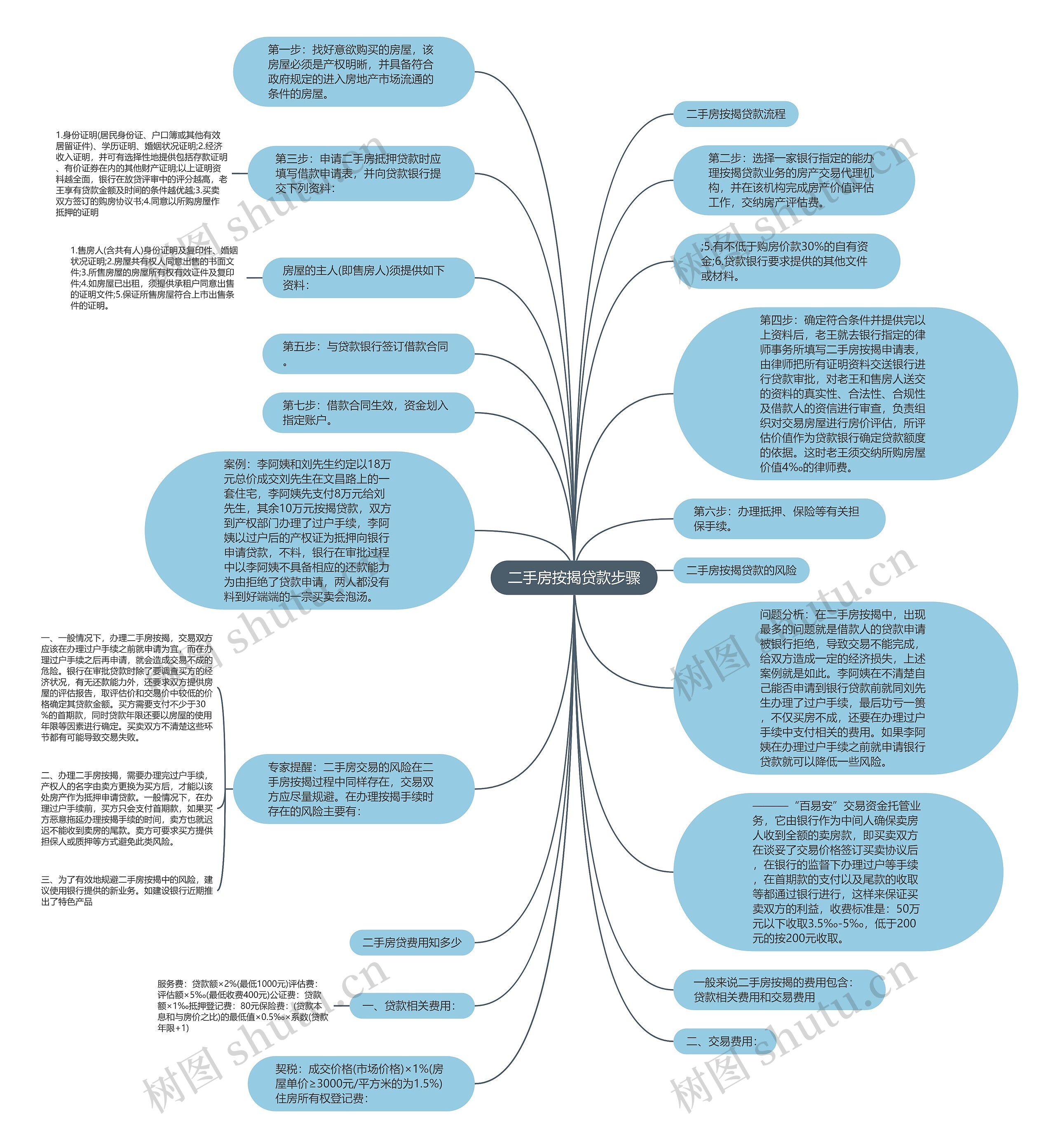 一般来说二手房按揭的费用包含:贷款相关费用和交易费用