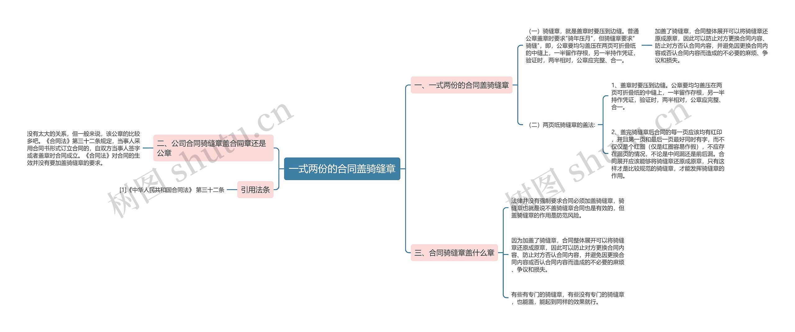 树图思维导图提供《一式两份的合同盖骑缝章》在线思维导图免费制作,点击“编辑”按钮,可对《一式两份的合同盖骑缝章》进行在线思维导图编辑,本思维导图属于思维导图模板主题,文件编号是:a7fd39a50120bf31ae14c06092f58cec