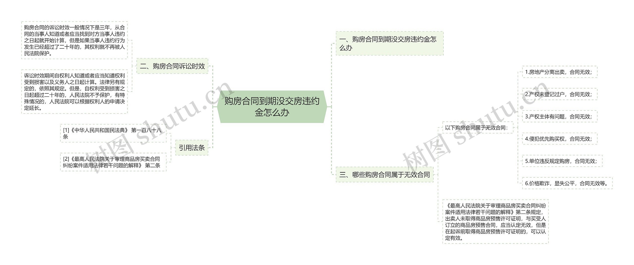 树图思维导图提供《购房合同到期没交房违约金怎么办》在线思维导图免费制作,点击“编辑”按钮,可对《购房合同到期没交房违约金怎么办》进行在线思维导图编辑,本思维导图属于思维导图模板主题,文件编号是:f1affe4e142a52af4e7954427e238326