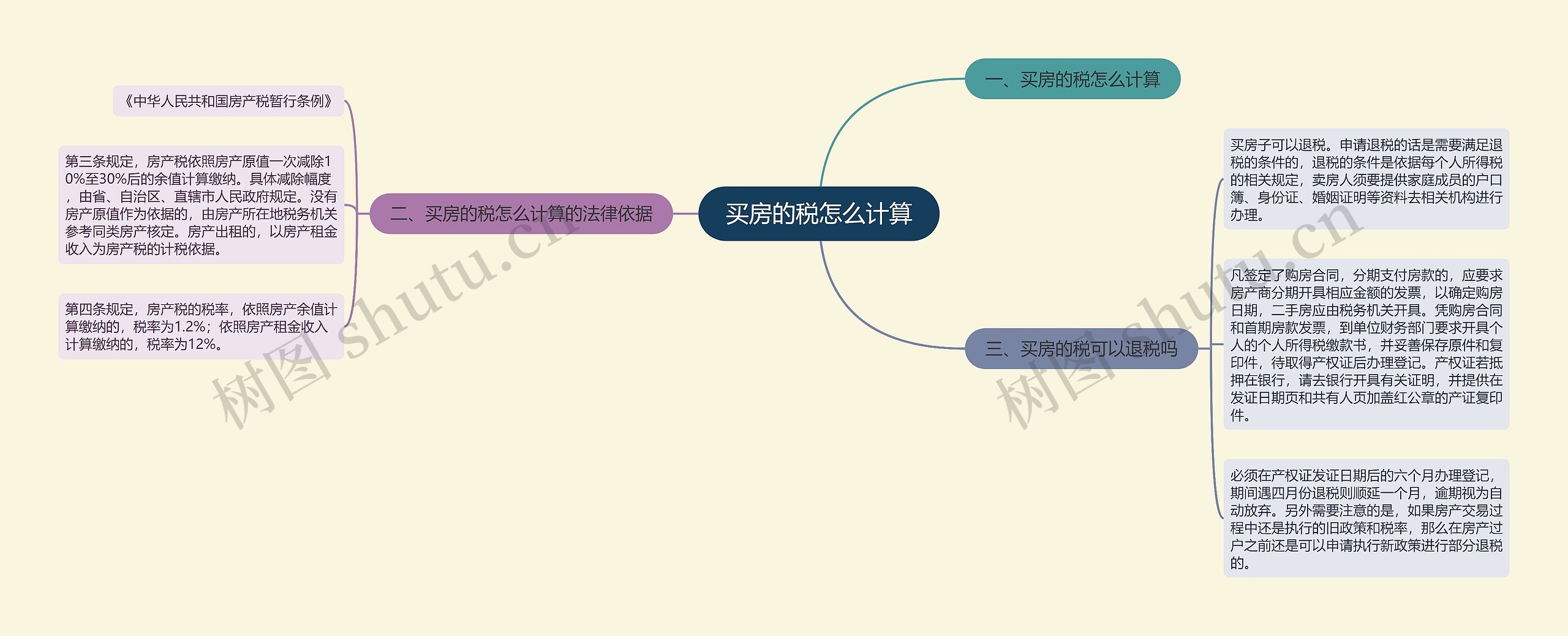 树图思维导图提供《买房的税怎么计算》在线思维导图免费制作,点击“编辑”按钮,可对《买房的税怎么计算》进行在线思维导图编辑,本思维导图属于思维导图模板主题,文件编号是:9374b1d12cc7326af0828828be5490a8