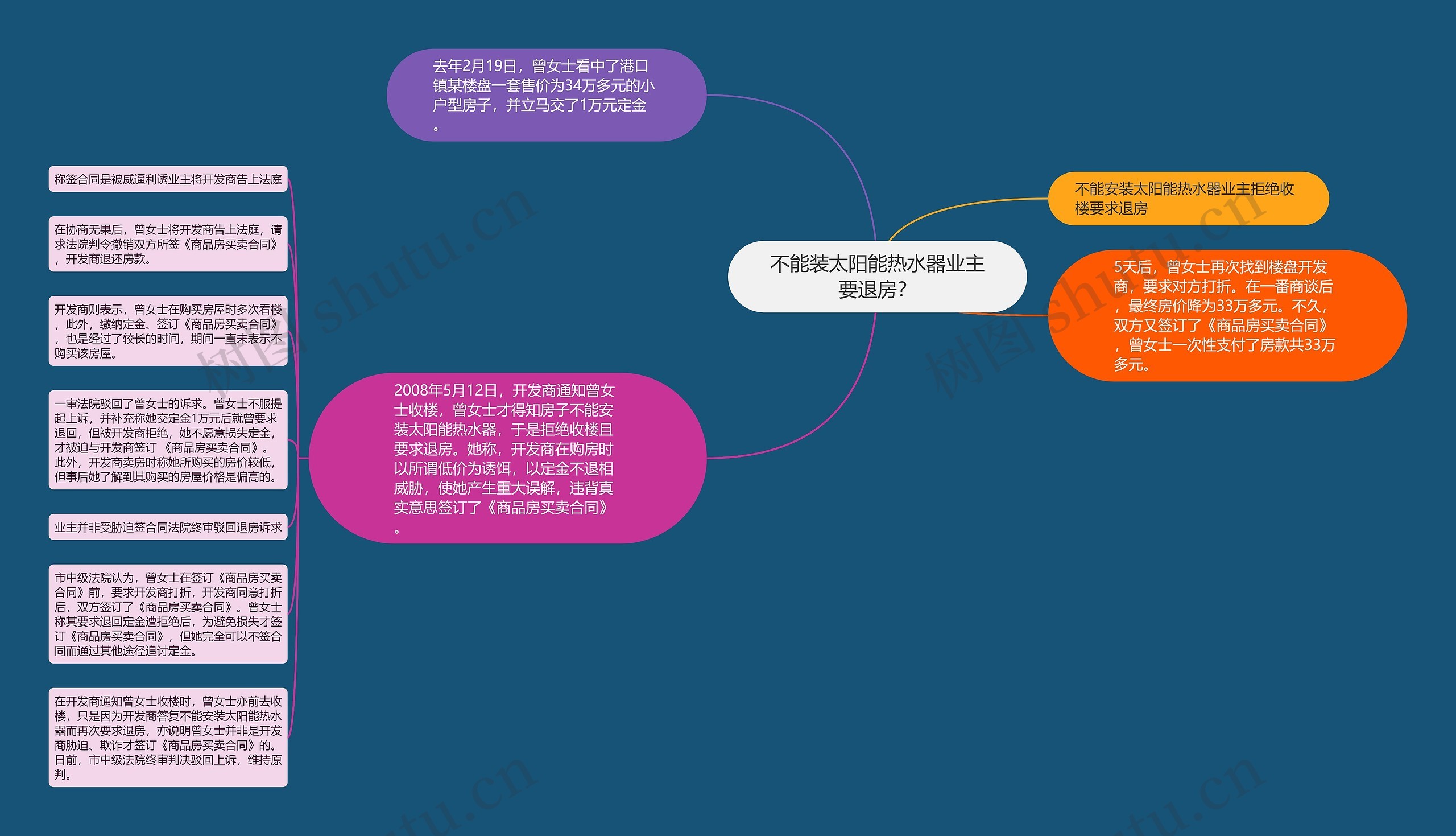 树图思维导图提供《不能装太阳能热水器业主要退房?》在线思维导图免费制作,点击“编辑”按钮,可对《不能装太阳能热水器业主要退房?》进行在线思维导图编辑,本思维导图属于思维导图模板主题,文件编号是:4ede90ccf1763011855f3e6e04b11025