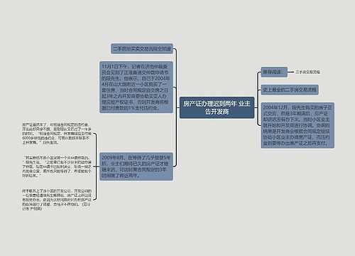 原告诉称:1996年6月,其作为购房业主(乙方)与被告某房地产公司(甲方)签订了一份《房地产买卖契约》,协议约定:乙方自愿向甲方购买甲方开发的的商住楼B座第20层102房屋;甲方保证上述房产权属清楚;楼宇完工后,甲方负责统一向市房地产管理部门办理产权登记领证手续,乙方应积极配合。