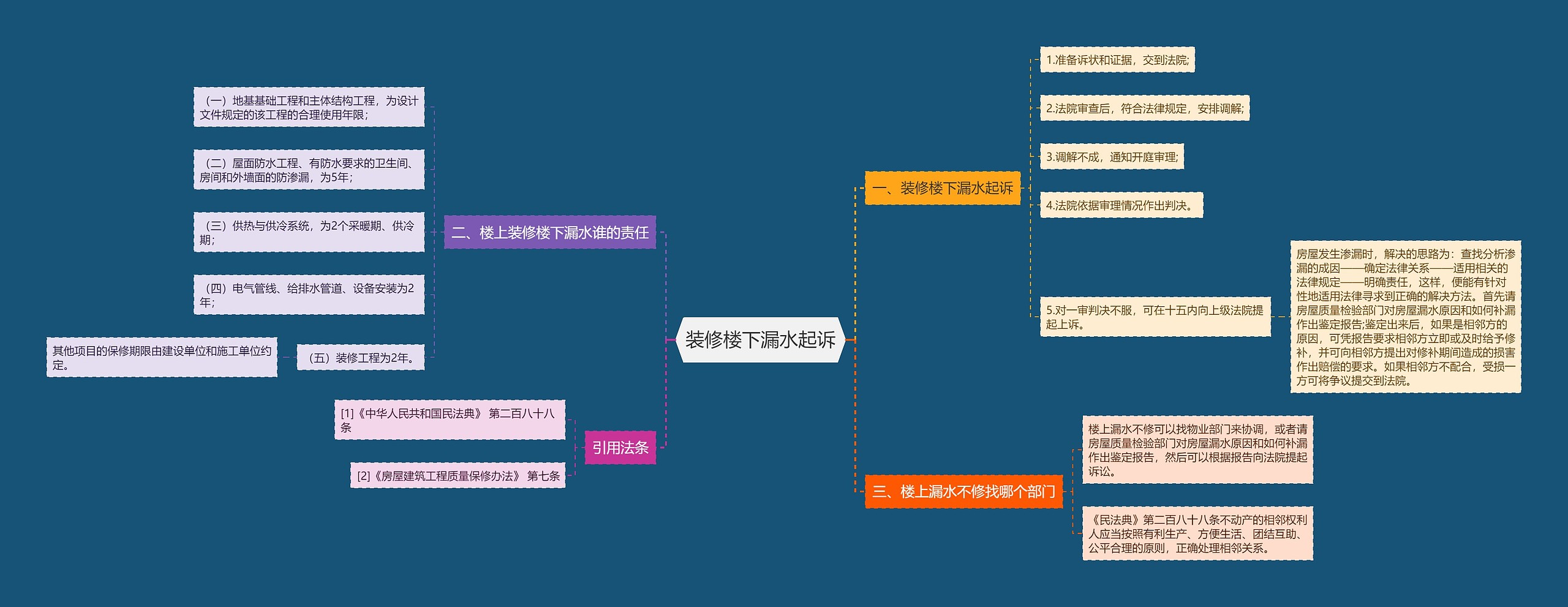 树图思维导图提供《装修楼下漏水起诉》在线思维导图免费制作,点击“编辑”按钮,可对《装修楼下漏水起诉》进行在线思维导图编辑,本思维导图属于思维导图模板主题,文件编号是:d240f186e63fc5a69e99f2f195bea71e