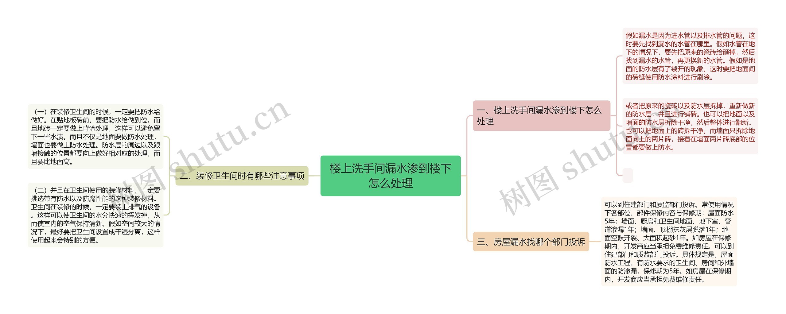 树图思维导图提供《楼上洗手间漏水渗到楼下怎么处理》在线思维导图免费制作,点击“编辑”按钮,可对《楼上洗手间漏水渗到楼下怎么处理》进行在线思维导图编辑,本思维导图属于思维导图模板主题,文件编号是:32dd93c4be9f6642bb53f4de7f3f6788