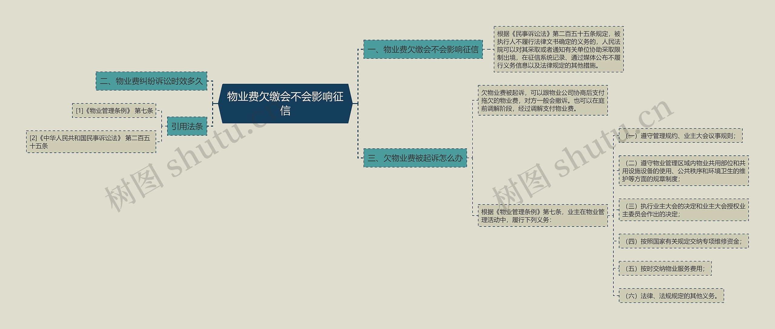 树图思维导图提供《物业费欠缴会不会影响征信》在线思维导图免费制作,点击“编辑”按钮,可对《物业费欠缴会不会影响征信》进行在线思维导图编辑,本思维导图属于思维导图模板主题,文件编号是:dc44aa1a9d0373888d0d05896d0fa897