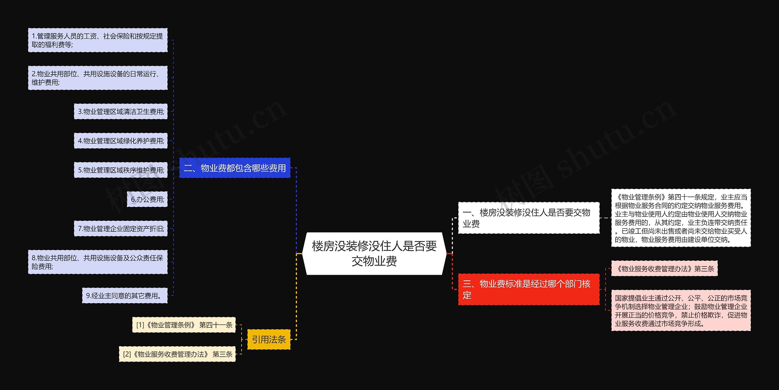 树图思维导图提供《楼房没装修没住人是否要交物业费》在线思维导图免费制作,点击“编辑”按钮,可对《楼房没装修没住人是否要交物业费》进行在线思维导图编辑,本思维导图属于思维导图模板主题,文件编号是:45d9b796f1b485daa3fdd17d2a877ba3