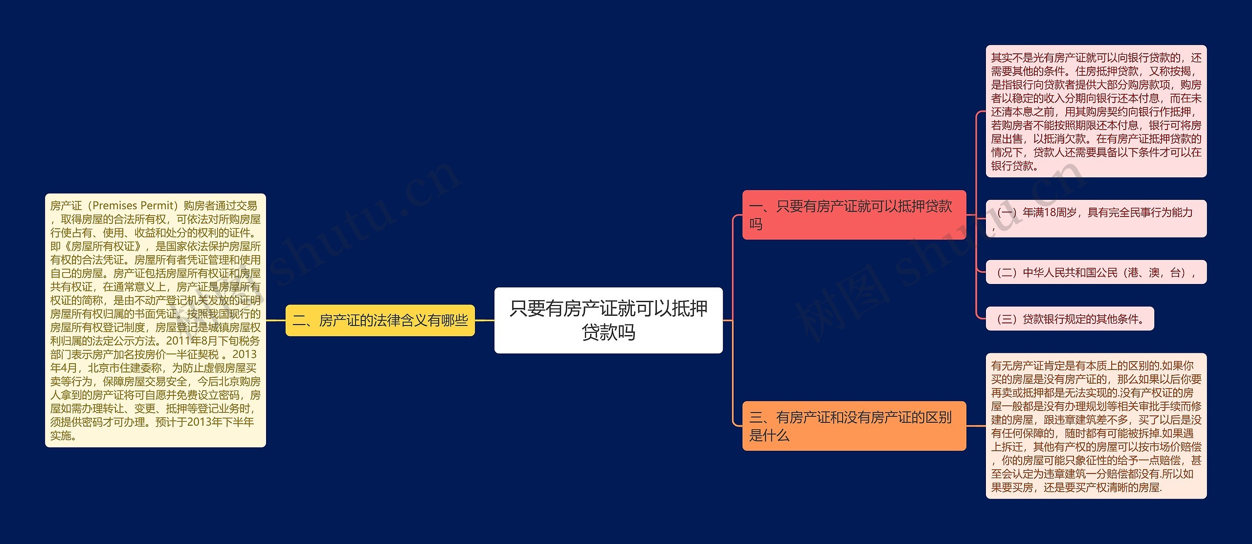 树图思维导图提供《只要有房产证就可以抵押贷款吗》在线思维导图免费制作,点击“编辑”按钮,可对《只要有房产证就可以抵押贷款吗》进行在线思维导图编辑,本思维导图属于思维导图模板主题,文件编号是:a52fcebc97ed7050f1010bf0ac415d3c