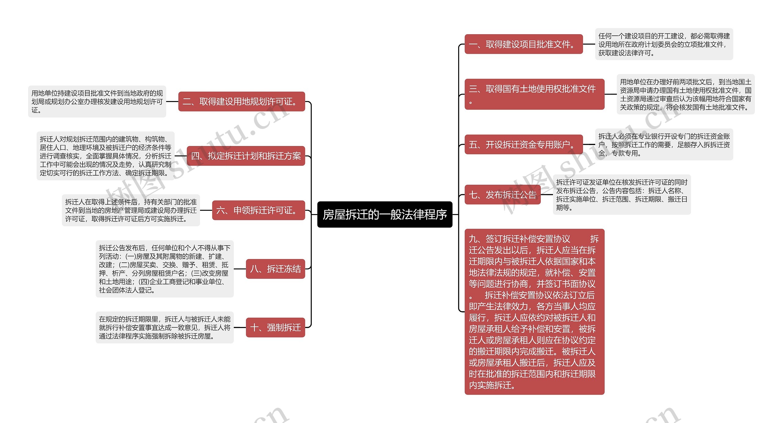 树图思维导图提供《房屋拆迁的一般法律程序》在线思维导图免费制作,点击“编辑”按钮,可对《房屋拆迁的一般法律程序》进行在线思维导图编辑,本思维导图属于思维导图模板主题,文件编号是:272a63207363efd0391cd07ed9abc504
