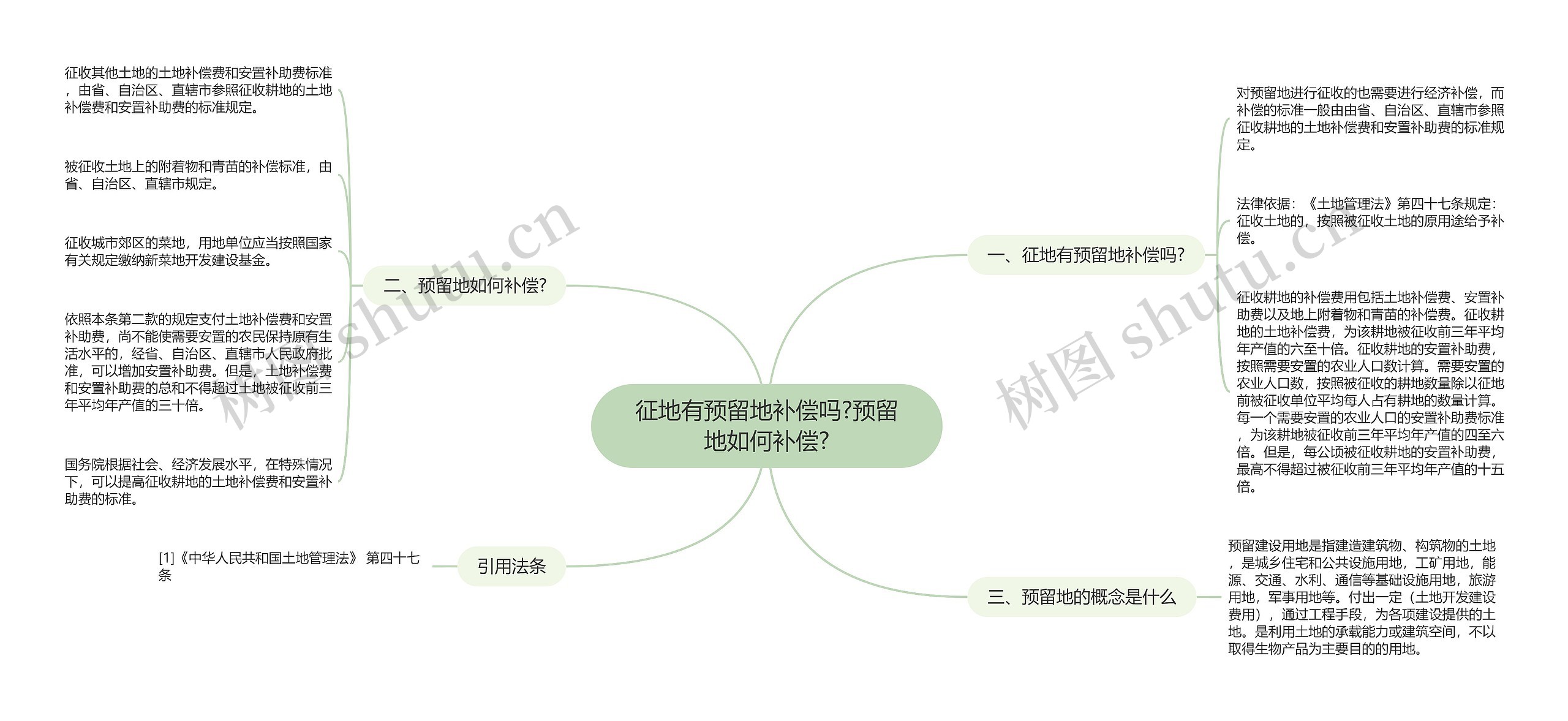 树图思维导图提供《征地有预留地补偿吗?预留地如何补偿?》在线思维导图免费制作,点击“编辑”按钮,可对《征地有预留地补偿吗?预留地如何补偿?》进行在线思维导图编辑,本思维导图属于思维导图模板主题,文件编号是:6f2d8c61ca90ee8e69858b707ced1f08