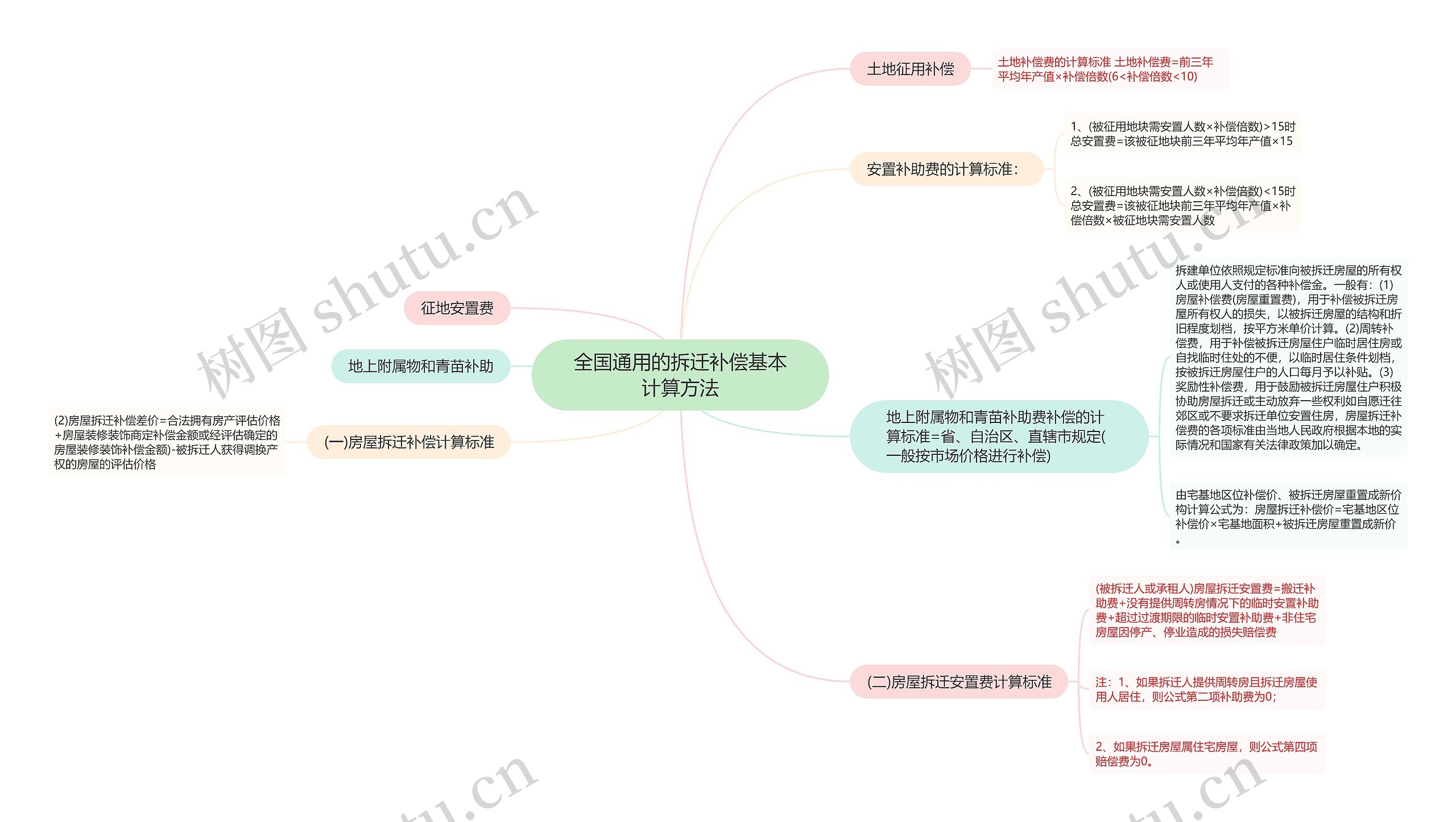 树图思维导图提供《全国通用的拆迁补偿基本计算方法》在线思维导图免费制作,点击“编辑”按钮,可对《全国通用的拆迁补偿基本计算方法》进行在线思维导图编辑,本思维导图属于思维导图模板主题,文件编号是:e14deadac207f7bbc88c14e2480a02f6