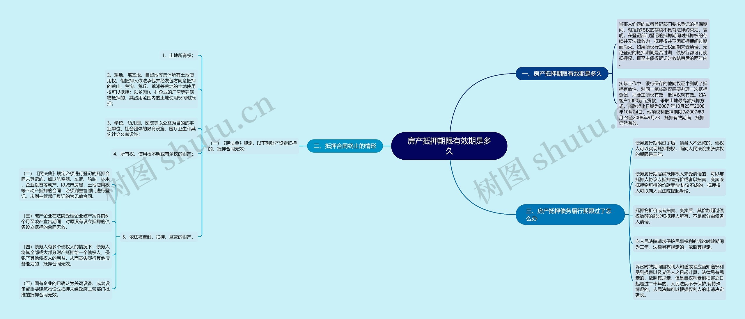 树图思维导图提供《房产抵押期限有效期是多久》在线思维导图免费制作,点击“编辑”按钮,可对《房产抵押期限有效期是多久》进行在线思维导图编辑,本思维导图属于思维导图模板主题,文件编号是:a7e8e8dc9c784912548acd5296b62c8c